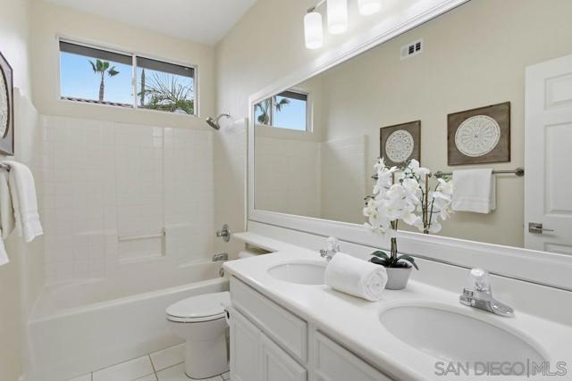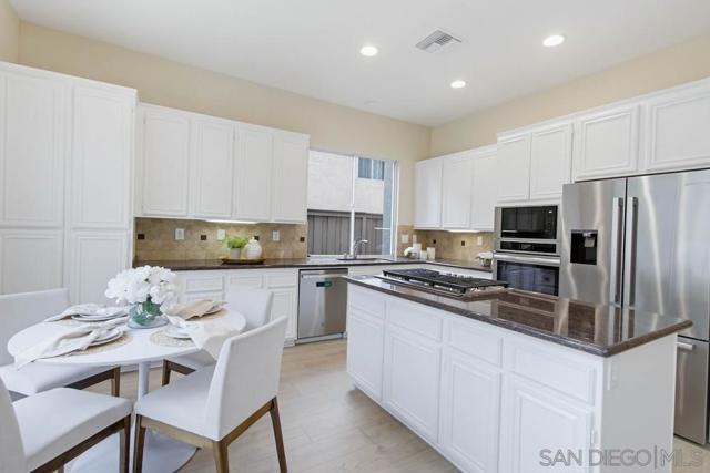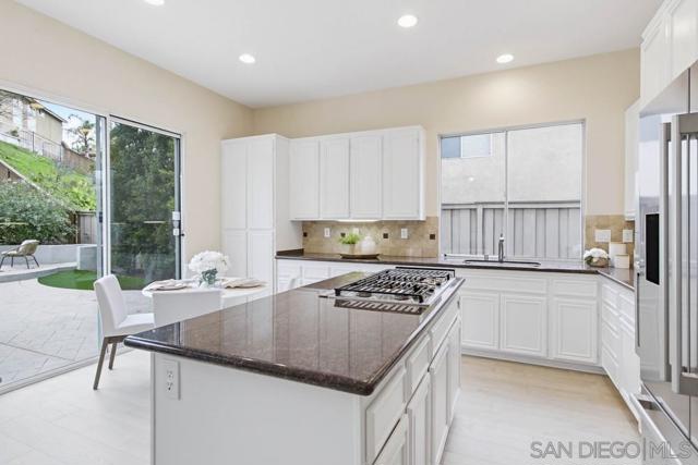 Kick off the new year in this sophisticated Scripps Ranch residence, recently upgraded with fresh paint and new flooring throughout, plus owned Solar. Inviting living spaces are highlighted by a gas fireplace in the family room and vaulted ceilings in the formal dining and living areas. The heart of the home is a chef’s kitchen equipped with a granite slab island, a five-burner gas range, and premium stainless steel appliances, complete with a sunny eating area and a slider leading directly to the outdoor patio and professionally landscaped backyard. The intelligently designed floor plan features 5 bedrooms, including a versatile upstairs flex room with double doors that serves perfectly as an optional fifth bedroom, playroom or executive office. The primary suite is an airy retreat with vaulted ceilings, a separate tub and shower, and spacious walk-in closet. Modern upgrades include an owned solar system (approx. 22 panels), a newer tile roof, and a 2-car garage thoughtfully equipped with a dedicated EV charger, heavy-duty overhead ceiling racks, and extensive storage shelving. Enjoy this turn-key home in the heart of Scripps Ranch with top-rated schools, no Mello-Roos, and a low HOA fee!