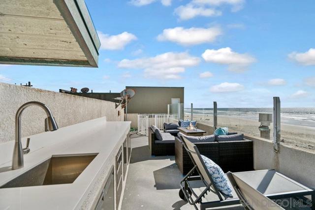 Look no further for your ideal OCEANFRONT rental ! OCEAN VIEWS FROM ALMOST EVERY ROOM. Outdoor living features wrap around oceanfront patio, expansive panoramic roof deck with 360 degree views, outdoor dining, chaise loungers, wet bar, sofas and fire pit. When you are not the sunrises and sunsets, relax in front of the fireplace, fully-equipped kitchen or open family room. Don't miss out on this dream home, just steps to the sand, set in a lovely location in Mission Beach ! RENTALS FOR 1 MONTH or MANY MONTHS AT THE OCEAN !!