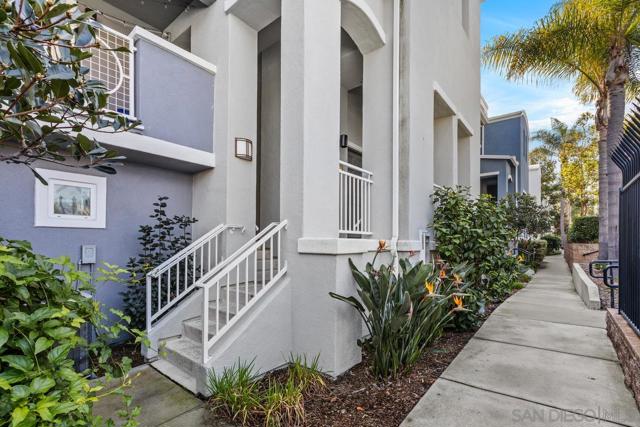 Welcome to Cabrillo at the Bay, a gated townhome community in the heart of Point Loma built in 2006, where convenience, design and lifestyle come together. This two-story townhome offers 1,227 square feet of well-planned living space above an oversized two-car tandem garage with direct access, plus a bonus room ideal for a home office or flexible storage space. The main living level is designed for easy, everyday living. Natural hardwood floors, complemented by travertine tile in the entry, kitchen, and baths, and carpeted bedrooms & stairs. The kitchen features granite countertops, stainless steel appliances that convey, and timeless wood cabinetry, opening seamlessly to the dining area with a custom built-in hutch. Step outside to the private balcony and take in unobstructed views of the pool and community—perfect for morning coffee or unwinding at the end of the day. Down the hall, you'll pass a full size washer/dryer on the way to your primary suite offering a calm retreat with ensuite bathroom - dual vanities, a glass-enclosed shower, soaking tub, and double closet areas with mirrored closet doors. The secondary bedroom is generously sized and conveniently located near the hall bath with a full tub and shower. This home is ideally positioned within the gated community and the city, offering resort-style amenities including a pool, spa, BBQ area, playground, and clubhouse, all with low HOA dues of just $265 per month. Centrally located near shopping, dining, Kaiser facilities, the Sports Arena, freeways, downtown San Diego, and the coast.
