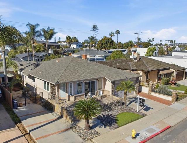 Crown Point Drive Views For Sale! First time on the market since it was built in 1960, this property features a 3bed 2bath 1326sf front house, with a 600sf rear 1bed 1bath casita guest house. Front home features include: driveway at the north of property with attached 2 car garage, washer dryer in garage, central AC & Heat, lovely open high-ceiling living space with gas fireplace, and front and rear patios. Casita features: AC & Heat via mini-split, full kitchen, stacked washer-dryer in-unit, separate driveway to south with its own side entry. Crown Point Park is just across the street with rolling green hills and lush trees. Most owners on Crown Point Drive elect to build a 2nd/3rd story to capture the BIG east and southerly views over Mission Bay toward Fiesta Island, Bay Park, and Downtown.