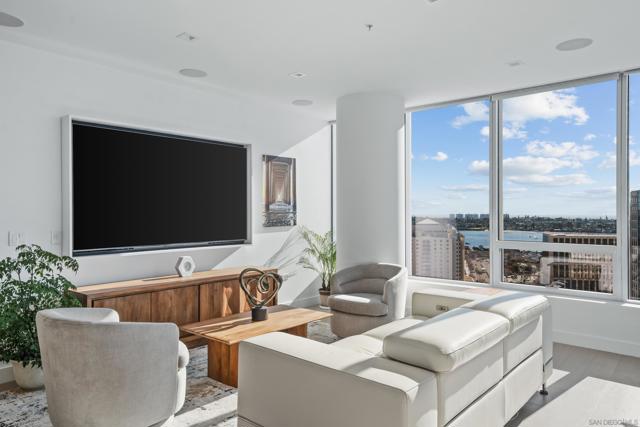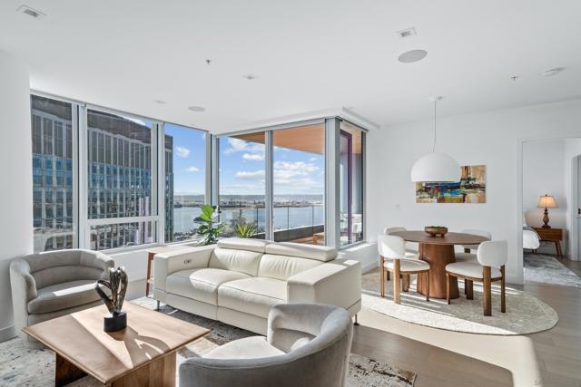 Experience refined urban living at Pacific Gate, San Diego’s most iconic and sought-after luxury high-rise. This turnkey, exquisitely furnished residence offers sweeping panoramic views stretching from the downtown skyline across San Diego Bay and out to the Pacific Ocean—an ever-changing backdrop of water, sky, and city lights. Expansive walls of glass fill the residence with natural light, showcasing thoughtfully curated interiors designed for comfort. The sleek chef’s kitchen is appointed with high-end appliances, Caesarstone countertops, and contemporary finishes, seamlessly flowing into the open living and dining spaces. The primary suite is a private retreat, featuring serene water views and a spa-inspired ensuite bath complete with a soaking tub, glass-enclosed shower, and an LED anti-fog mirror with integrated TV. Step onto the private balcony to enjoy morning coffee or evening sunsets overlooking the bay. Residents of Pacific Gate enjoy unmatched resort-style amenities, including a chef concierge, private yacht share, luxury car fleet, pool terrace with cabanas, outdoor kitchen and fire pit, residents’ lounge with catering kitchen, screening room, and fully equipped business and conference facilities. An exceptional opportunity to lease one of San Diego’s most desirable waterfront residences.
