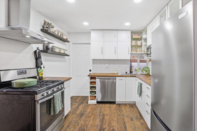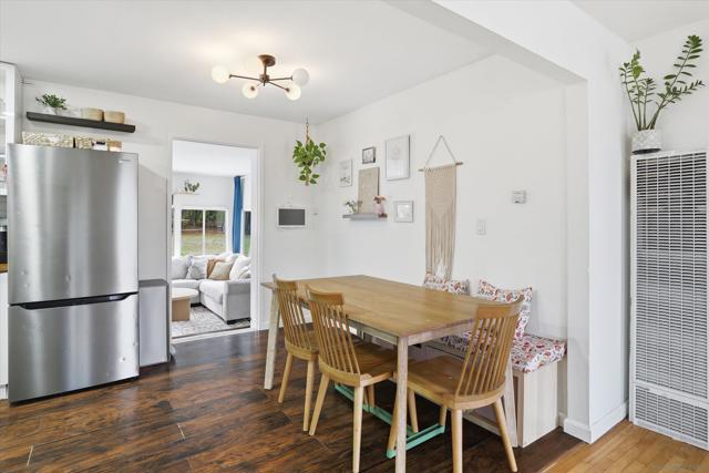 Major value add: new roof plus recent interior updates — and a large usable yard — perfect for first-time buyers or downsizers seeking a stress-free home... truly turnkey! Beautifully updated single-story home featuring a massive multipurpose sunroom that may be used as an office, den, or playroom, features beautiful glass windows, wall AC unit, and sliding glass doors to patio allowing for an abundance of natural light! This home has a huge fenced in backyard ideal for entertaining, gardening, or future expansion and features covered patio, open patio, green space, and mature trees. Drought tolerant landscaping in front yard. This well-maintained 2-bedroom, 1-bath residence offers a modern, clean aesthetic, abundant natural light, and open floor plan with wide plank laminate wood floors, recessed lighting, high-end finishes, and air conditioning. You enter into spacious living room featuring extra-large double pane picture window, ceiling fan, and wall AC unit. Dining area with designer chandelier opens to chef's kitchen with dark, butcher block-style countertops, white tile backsplash, beautiful white cabinets, and stainless-steel appliances. Master bedroom features premium ceiling fan, double pane windows and ample closet space. 2nd bedroom features the same high-end features. Hall bathroom includes floating shelving made of solid wood, designer lighting, premium sink and vanity, tile encased shower. Move-in ready with thoughtful upgrades, this home delivers peace of mind, low maintenance living, and great curb appeal in a desirable El Cajon neighborhood.