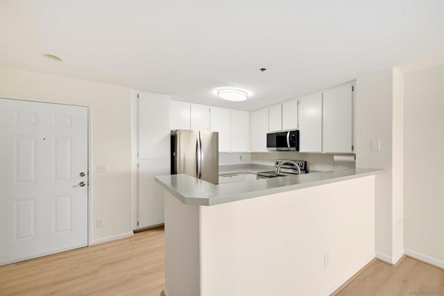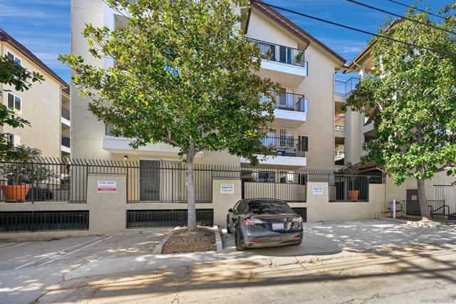 Here is your opportunity to own a beautifully updated, well-appointed top-floor home with one common wall ideally situated in the vibrant community of Hillcrest, University Heights, Balboa Park and Morley Field. This west-facing one-bedroom, one-bath residence offers true urban living at its best—right outside your door, yet comfortable and private inside. Situated on the top floor with a private balcony, the home is filled with abundant natural light and enjoys excellent sunset and neighborhood views. The living room features a cozy wood-burning fireplace creating a warm and inviting space to relax or entertain. Over $50,000 in improvements were completed between October 2024 and December 2025, including a new $16,000 Mitsubishi mini-split HVAC system with ceiling-flush units and dual heads, new Simonton dual-pane Energy Star vinyl windows and slider, and updated flooring throughout with LifeProof luxury vinyl plank in Vesinet Oak. The kitchen has been updated with stainless steel LG appliances, including a 22-cu-ft refrigerator, convection range, microwave, and dishwasher. The bathroom has been tastefully upgraded with a DreamStyle walk-in shower in white with ADA stainless steel grab bars, new flooring, quartz countertop, and updated finishes. Additional highlights include two assigned parking spaces, a private storage unit, community laundry, and a location just one block from a bus stop, making commuting and city access effortless. With major system upgrades already completed, an unbeatable walkable location, and thoughtful modern improvements throughout, the value is apparent in this exceptional Hillcrest home.
