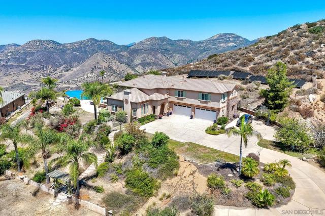 Discover your personal paradise in the highly desired area of Blossom Valley. This exquisite home offers a blend of luxury and tranquility, nestled on an expansive lot. Step into the backyard oasis, where a stunning zero-edge pool awaits, complete with a Baja shelf, rock slide, and grotto for endless enjoyment. Entertain in style with a built-in BBQ area and relax on the outdoor deck offering breathtaking views of Lake Jennings. Evenings can be spent by the outdoor fireplace or wandering through your private vineyard . The large kitchen is a culinary dream, spacious island, granite countertops, and high-end built-in stainless-steel appliances. A bedroom on the main floor with a full bath provides added convenience and flexibility. Attached 4 car garage with an abundance of built in cabinets. Two laundry/utility rooms- one on each floor. Features include hardwood floors, crown moulding, and recessed lighting.