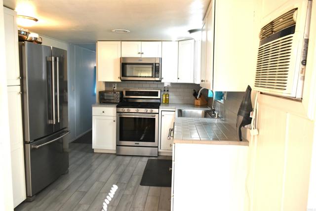 Motivated Seller! Home offers a spacious living room, kitchen and bathroom have been remodeled, stainless steel Maytag appliances, upgraded flooring in kitchen, dining room and living room, enjoy the breeze from the enclosed porch. Home has a sunroom believed to be 18x7, and beautiful garden with a citrus tree. Nestle in the friendly 55+ Community SAN MARCOS MOBILE ESTATES with amenities that include the clubhouse, pool, jacuzzi, billiard room, library, etc. Located near Walmart, groceries stores, near hospitals and easy access to freeway. One resident must be 55+ while the second resident may be 40+. Small pet welcomed with prior management approval. Control rent lease park. Owner died of natural causes in the home. Property sold AS-IS with no implied warranties, no repairs will be made. All personal property currently at the property will convey with the sale.