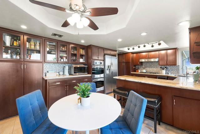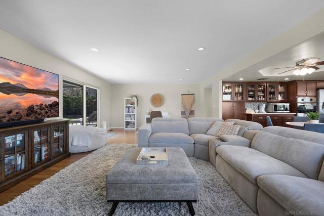 Situated within one of Fletcher Hills’ most desirable pockets, this 4 bed, 2.5 bath mid-century home captures stunning views and an airy, light-filled feel across 3,834 SF of living space on a 0.41-acre lot. Vaulted ceilings with exposed beams set the tone, while oversized rooms and walls of windows bring in natural light throughout the day. Three view decks extend the living space outdoors and capture sweeping neighborhood outlooks. The kitchen is finished with granite counters, stainless appliances, and a dedicated wine fridge. Bamboo flooring and custom ironwork blend classic style with modern comfort. Select updates include refreshed paint in the lower-level room, improved ventilation, and updated fixtures in portions of the baths. The backyard has been thoughtfully improved with newly installed Hollywood hedges along both sides of the property for added privacy. Olive, magnolia, and Australian willow trees complement the landscape, along with newly planted fruit trees. A pergola was added to the rear patio, and irrigation and drainage systems were upgraded. Located in the highly desirable Fletcher Hills neighborhood of El Cajon, this home offers a peaceful suburban atmosphere with tree-lined streets and scenic hillside views. Residents enjoy easy access to nearby parks and local amenities, all just a short drive from downtown San Diego. With no HOA and owned solar, the property offers flexibility, efficiency, and long term value!