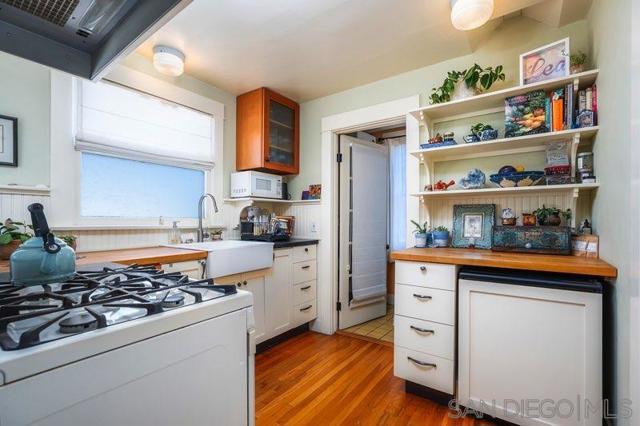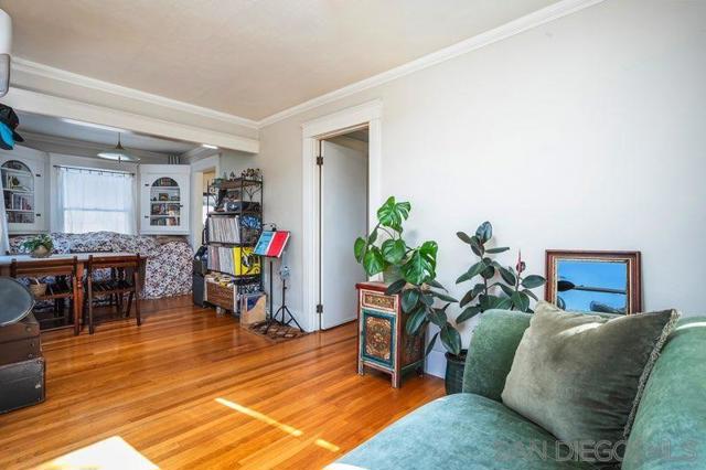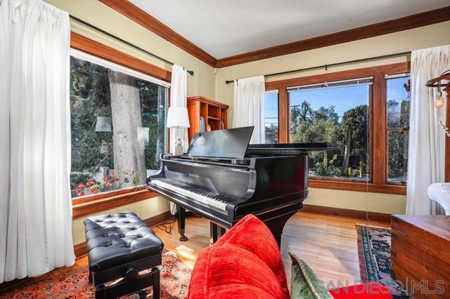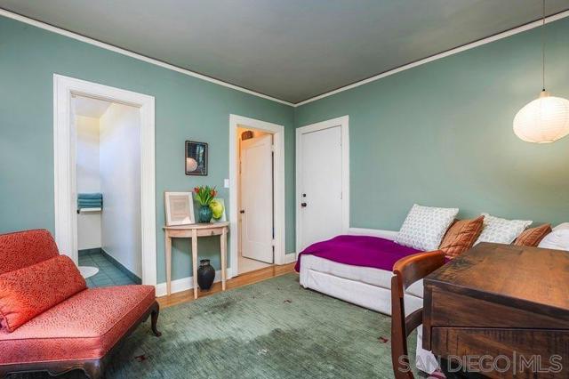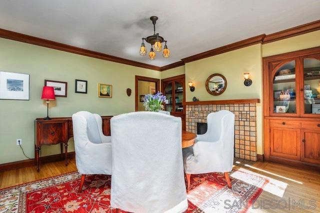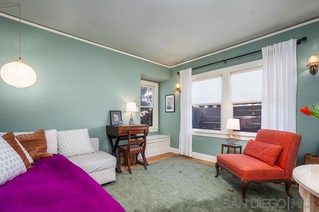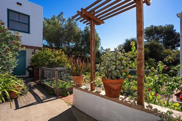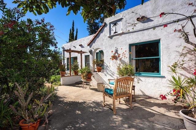 Charming Spanish-style home offering rare versatility, income-producing, and a peaceful "country-in-the-city" feel on a large lot in the heart of North Park, just steps from restaurants, cafés, and neighborhood shops. The main house features classic architectural details, including arched entryways, hardwood floors, crown molding, original gumwood trim, and a traditional fireplace with genuine Batchelder tile surround. Light-filled living spaces flow naturally, with built-in cabinetry and wide openings creating an inviting layout for daily living and entertaining. A unique front room off the main living area has its own exterior entrance and hardwood pocket doors, allowing it to be closed off from the rest of the home, ideal for a professional office, studio, or guest space. (see sup) The spacious kitchen serves as the heart of the home, featuring custom wood cabinetry, a large center prep island, recessed lighting, and an adjacent breakfast nook. Multiple windows brighten the space, and built-in storage keeps the layout functional and organized. Bedrooms are well proportioned and receive excellent natural light, while updated bathroom finishes blend modern touches with original character. Outdoor living shines with a welcoming front porch for greeting neighbors, a secluded side porch overlooking the garden, and an expansive backyard filled with mature natural landscaping, creating rare privacy and space to relax or entertain. The home is also equipped with a 5,200-watt solar power system, installed in 2023 (fully owned), which adds energy efficiency and long-term utility savings to this already special property. Privately located at the rear of the lot is a detached one-bedroom casita above a two-car garage with its own entrance. This space includes hardwood floors, crown molding, built-in cabinetry, a full kitchen with butcher block counters and a farmhouse sink, dedicated laundry, mini-split, and a raised deck nestled in the canopy of a mature loquat tree with garden views, ideal for rental income, a true retreat. Unbeatable location near Bird Park, Morley Field (disc golf, swimming, tennis, velodrome), Balboa Golf Course, and Balboa Park museums and zoo. Easy access to downtown by car, bike via Pershing Drive bike lanes, or public transit. San Diego International Airport and the Naval Medical Center is approximately 10 minutes away. A rare opportunity to enjoy architectural charm, flexible living, and a tranquil outdoor setting while embracing the best of North Park's Community and urban living.