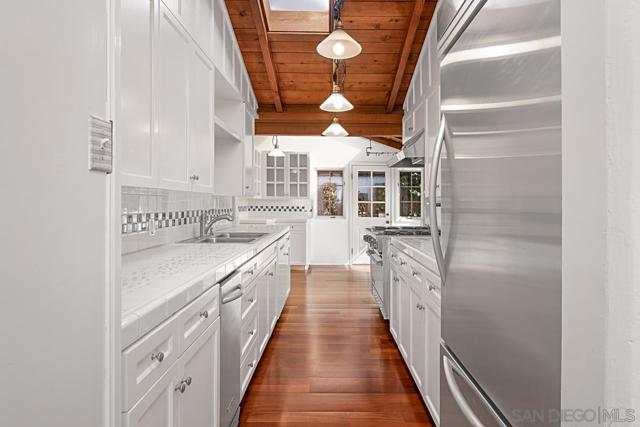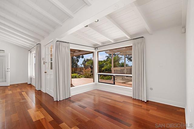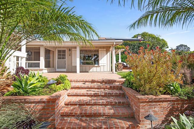 Character Exudes from every room of the vintage style, single story Del Mar Village Cottage. Enjoy Panoramic Ocean Views and upgraded features, Such as Remodeled Bathrooms, Brazilian Hardwood Floors, Open Beamed Ceilings, French Doors, High end Kitchen Appliances, AC, Floor to ceiling windows, Laundry rm & 2 car garage. Multiple Outside areas to enjoy the Amazing Coastal Views and Gorgeous Landscaping in a private, tranquil Setting. Live the Lifestyle of Walking to local Shops, Restaurants and the Beach!