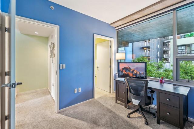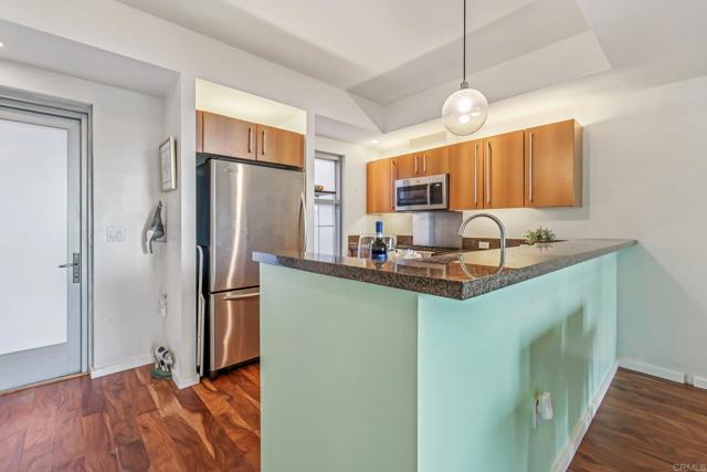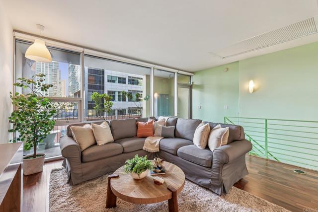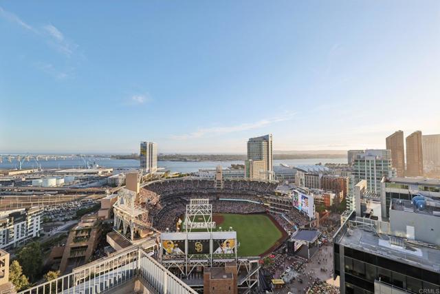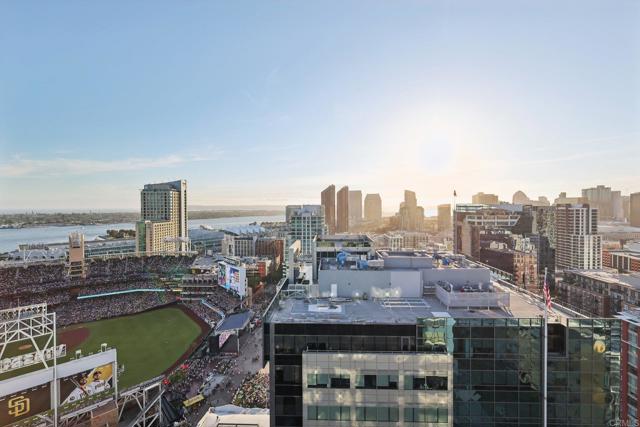 Top floor townhome (2-story) condo at the highly desirable ICON building in Downtown San Diego's East Village. These townhome style homes rarely become available, and give you separation between the living space (upstairs) and the bedrooms (downstairs). This West facing unit has a direct view of Petco Park, and is centrally located in the heart of Downtown San Diego. Modern finishes inside include: granite counters, stainless steel appliances, hardwood flooring throughout the living spaces, remote controlled blinds, in unit washer/dryer, 2 parking spaces (tandem), and a private storage in the underground garage.