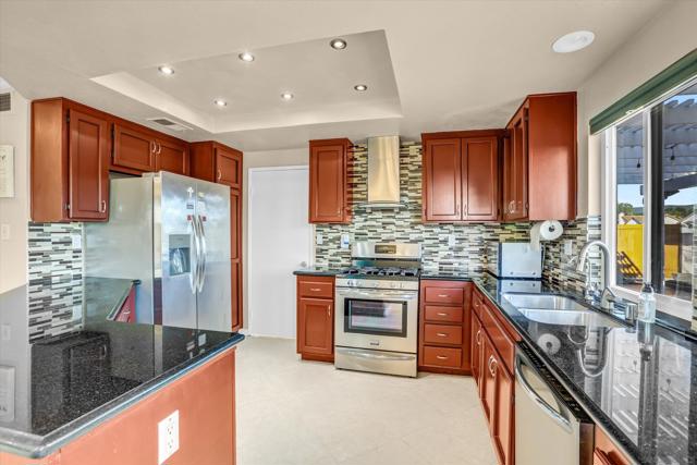 Rancho Peñasquitos Turnkey: Walking distance to Award Winning Poway Schools, Owned Solar with backup Battery & Low-Maintenance Living. Ideally situated in The Bluffs of Rancho Peñasquitos, this 4BD/2.5BA home balances spacious architecture with significant modern infrastructure upgrades. A soaring cathedral ceiling and recessed lighting anchor the living and dining great room, creating an airy flow filled with natural light. The property features high-value capital improvements, including a newer roof (2019) and a high-performance Solar System with Backup Battery (25-year warranty)—delivering peace of mind and energy savings. The interior has been refreshed with new Luxury Vinyl Plank flooring, offering durability and a modern look. The heart of the home is the open-concept kitchen; featuring granite counters, a newer refrigerator, and stainless steel appliances, it flows seamlessly into the family room for easy daily living. A versatile upstairs loft perfect for a home office, guest suite includes a space-saving wall-bed. Step outside to an expansive, drought-tolerant backyard. Designed for ultimate low-maintenance living, the massive tiled patio and shaded pergola provide a durable, private venue for large-scale entertaining or sports without the hassle of lawn care. Complete with a 3-car garage, owned Solar with backup Battery, 4-camera Ring security system, and updated bath fixtures. Walking distance to award-winning Poway Unified schools. No HOA or Mello Roos.
