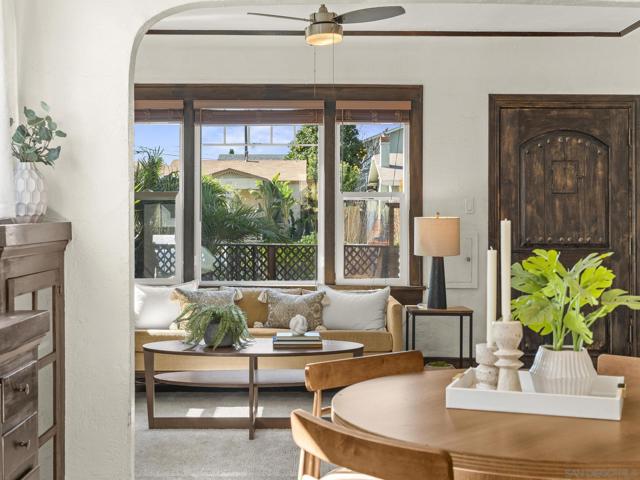 Live in one, rent the others, and let North Park help pay you back each month - yes, really. Rare 3-unit layout with a detached character home in front and a rear duplex - the kind of flexibility both owner-occupants and investors hunt for but rarely find. Think lifestyle plus income, options plus upside, and a foothold in one of San Diego’s most loved urban neighborhoods. Off-street parking, usable outdoor spaces, and classic architectural charm make this more than just numbers on a spreadsheet - it’s a strategy with soul. A smart, creative path into North Park ownership where your tenants help with the mortgage and your future self says thank you. Close to dining, shops, transit and recreation, opportunity never lived so conveniently. *See Supplement for More Details* Property consists of three 2BR/1BA units with an ideal configuration: a detached front residence and a rear up/down duplex. Front home offers standout character with Craftsman and Spanish wood details, built-ins flanking the fireplace, hardwood floors, and a remodeled kitchen with granite counters, large island, abundant cabinetry and a walk-in pantry. A formal dining room features a stunning classic built-in buffet cabinet, which is a rare and memorable architectural touch. The home is light, airy, and includes air conditioning for year-round comfort. Private fenced front yard enhances owner or tenant enjoyment. Long driveway provides off-street parking for up to three vehicles, plus a detached garage currently used for storage offers added utility and future flexibility. Rear duplex units are spacious and functional with comfortable layouts and good natural light. Long-term tenants share access to a large common patio area that provides generous outdoor usability while each unit maintains its own interior privacy. Each unit has an alley-access assigned parking spot. From an investor standpoint, these are well-kept bread and butter units that show nicely today, with clear value-add potential through future cosmetic updates. Or maybe the value add is seeing if an ADU or two where the current garage is would be a possibility. Strong rental appeal paired with a highly convenient metro location near retail, restaurants, transportation and nearby sports and recreation amenities makes this a tenant home run.