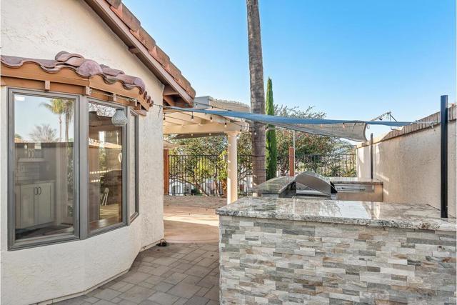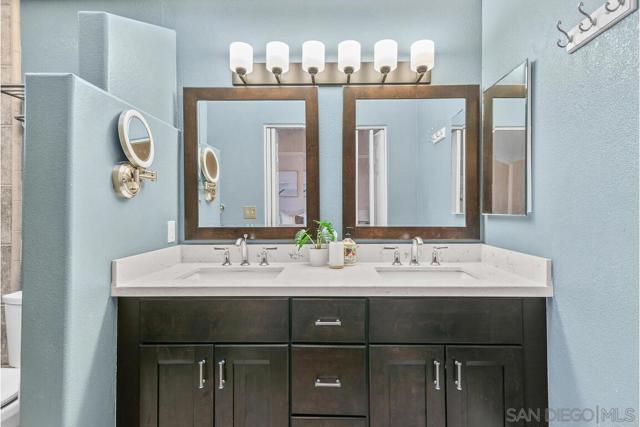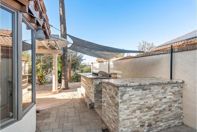 Beautifully updated and move-in ready, this home offers comfort, thoughtful upgrades, and an ideal East County location. Situated in a well-maintained community with a pool, the property enjoys quick access to both the 52 and 163 freeways, making commuting throughout San Diego easy while still enjoying all that Santee has to offer. The exterior has been extensively refreshed, including full exterior paint, a newer roof (2022), assumable leased solar (SunRun), updated fencing, and professionally designed backyard and side yard renovations completed in 2023 with new pavers, turf, and replaced drainage lines. Select windows were replaced in 2024, adding efficiency and natural light. Inside, the home features a remodeled kitchen completed in 2021 with all new appliances, expanded windows, an enlarged pass-through, French doors replacing the original slider, and durable LVP flooring throughout. Elevated ceilings and a bright, open layout create an easy flow for everyday living and entertaining. The upstairs loft provides flexible space for a home office, media room, or guest area, with improved attic access and added storage, insulation, lighting, and electrical upgrades. Additional improvements include a renovated hall pantry, relocated HVAC filter for better accessibility, and practical electrical updates throughout. Close to Mission Trails, Santee Lakes, shopping, dining, and outdoor recreation, this home blends modern updates with location and lifestyle — a smart opportunity in one of Santee’s most accessible communities.