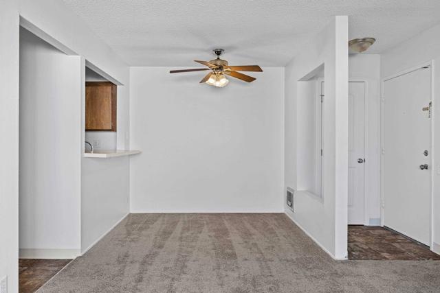 Welcome to your bright retreat in the heart of San Diego! Tucked inside a quiet community, this desirable second-floor studio combines comfort, convenience, and style. Step inside to find a large living/sleeping space filled with natural light, a cozy dining area, and a spacious bathroom and closet for added functionality. Recent updates include fresh carpet and paint. A private patio extends your living space outdoors, perfect for morning coffee or evening unwinding. Resort-style amenities await just outside your door: take a dip in the sparkling pool, soak in the spa, host a weekend BBQ, or take advantage of the community laundry facilities. With your own assigned parking spot and quick access to the trolley, Fashion Valley, and the scenic San Diego River, everyday living feels effortless. Whether you’re looking for your first home or a stylish city escape, this condo offers the perfect blend of location, lifestyle, and value.