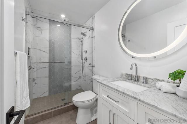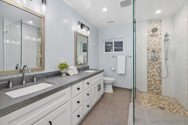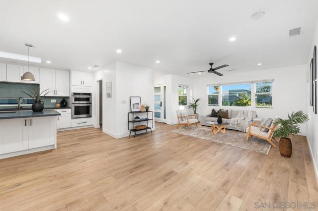 Gorgeous, thoughtfully updated home in the heart of Pacific Beach featuring a spacious open-concept living design and beautiful neutral LVP flooring throughout. Abundant windows and a skylight in the kitchen flood the home with natural light, creating a bright and inviting atmosphere. The stunning kitchen truly serves as the center and heart of the home, showcasing a large center island with an additional prep sink, custom backsplash, bright white cabinetry, stainless steel appliances, and generous counter space—perfect for everyday living and entertaining alike. The expansive living area flows seamlessly, offering comfort and functionality. Retreat to the large primary suite, complete with an updated en-suite bathroom and direct access to the private patio—ideal for indoor/outdoor living. The patio leads to a detached, fully move-in-ready ADU with its own private entrance, parking, kitchen, bathroom, and bedroom, providing incredible flexibility for guests, rental income, or a private workspace. Current owners used ADU as a highly profitable Short Term Vacation Rental. See docs section in MLS for last year’s PNL. Additional highlights include energy-efficient vinyl windows, air conditioning, a dedicated laundry room conveniently located off the kitchen with ample storage space, and a two-car garage with alley access. Enjoy a true Pacific Beach lifestyle with easy access to the bay and ocean, scenic walking and biking paths, vibrant local cafés and dining, boutique shopping, and all the coastal charm that makes PB one of San Diego’s most desirable neighborhoods.
