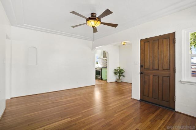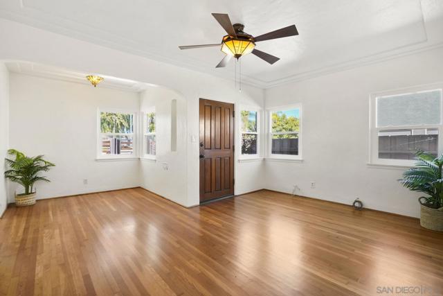 Timeless Spanish-Style Craftsman in Vibrant University Heights/North Park. 2 bed WITH A BONUS ROOM/OFFICE/BEDROOM. Nestled in the highly sought-after University Heights/North Park neighborhood, this stunning Spanish-style Craftsman home blends classic charm with modern curb appeal. With approximately $75,000 in renovations, this residence offers authentic Spanish tile, gleaming hardwood floors, and elegant arched niches that exude character. Its prime location near parks, restaurants, and freeways makes it ideal for those craving a walkable, vibrant lifestyle. Recent Upgrades: Fresh stucco (2021), roof maintenance (2024), and enhanced attic/wall insulation (2021) for superior energy efficiency. 240V outlet for car charging in the garage (2023), new water heater (2021), updated interior electrical (2017), and centrally ducted electric AC/heat (2017).Remodeled bathroom (2016) and a breathtaking kitchen with custom cabinetry (2017). Upgraded plumbing and sewer, pre-plumbed for an additional bathroom in the back office (2017).Modern exterior fencing installed. Recently painted, floors refinished. Enjoy the charm of a classic home with modern conveniences! WALK SCORE IS 94! A "WALKER'S PARADISE"