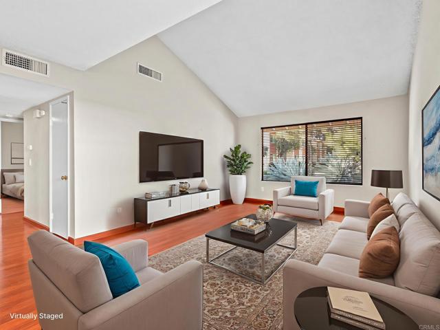Welcome to this delightful upstairs condo in the heart of La Mesa, ideally located near shopping, schools, Lake Murray, and less than 10 minutes from San Diego State University. This light and bright home features 2 bedrooms and 2 full bathrooms, an updated kitchen with stainless steel appliances, and a spacious open-concept living and dining area—perfect for everyday living. The large primary bedroom offers a walk-in closet with ample storage. Additional highlights include a separate laundry room in the storage unit, and 1 covered parking space and 1 uncovered space. With no upstairs neighbors and low HOA dues that maintain the exterior and include water, this condo offers comfort, convenience, and exceptional value in a prime location.