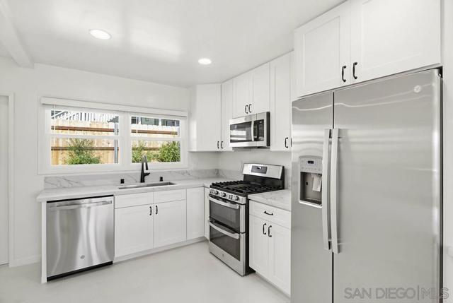 GORGEOUS brand new remodel of this adorable beach cottage on a quiet street in North PB. Brand new kitchen including: flooring, cabinets, quartz countertops, stainless appliances and overflow mudroom with pantry storage and stackable washer/dryer. Charming narrow plank hardwood has been refinished beautifully, brand new dual paned windows throughout, all new electrical fixtures/outlets/switch plates, full paint and gorgeous new landscaping in the front and back yards which are both private. One car garage included and water is paid by owner. Enjoy the convenience of being blocks to Kate Sessions Park/Elementary, shopping, Vons/Trader Joe's and a short distance to the beach and bay!