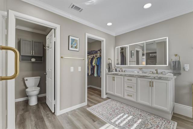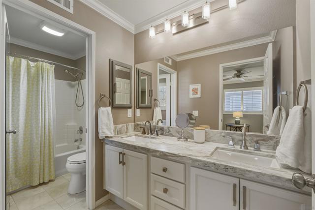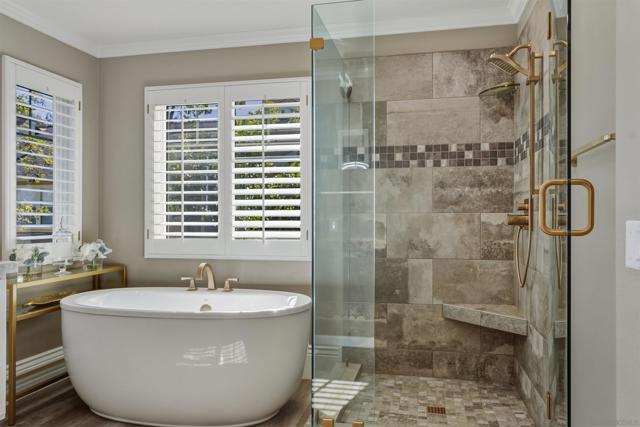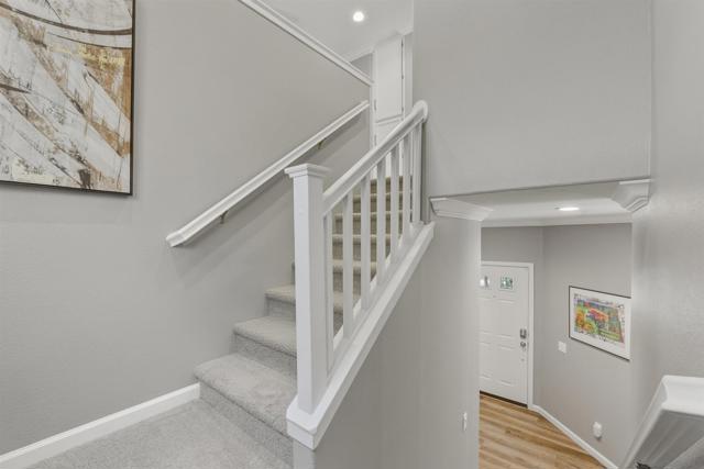 ** HIGHLY UPGRADED VALUE ** This stunning Plan 4 energy efficient home offers nearly 1,700 sq ft with 3 bedrooms, 2.5 baths, and a versatile loft in the desirable Stratford Place (Stonecrest) community. Designed for comfort and entertaining, the remodeled chef’s kitchen features white cabinetry, taupe quartz counters, herringbone tile backsplash, custom pendant lighting, and stainless Samsung and KitchenAid appliances. New AC, lifetime warranty energy efficient windows & patio slider, ex Elegant Pro-Tek LVP floors, plantation shutters, and high ceilings create a bright, airy feel throughout the main living areas and the upstairs primary suite. The living room fireplace adds warmth, while the loft is ideal for a home office, gym, or yoga space. The updated guest bath features marble flooring. The luxurious primary bath is fully remodeled with a glass-enclosed shower, soaking tub, new cabinetry, and a spacious closet. Indoor dining flows seamlessly to a private backyard with mature landscaping—perfect for relaxed SoCal living. Additional highlights include a 2-car attached garage with NEW door, deeded driveway parking, NEWER Corning Cool Comfort roof & meticulous maintenance throughout. Community amenities include walking paths, clubhouse, pool and spa, tennis courts, gym, and fitness classes. This turnkey home truly checks all the boxes. With nearly 1700 sq’, this stunning 3 bed, 2.5 bath plus loft Plan 4 offers the perfect blend of space, comfort & style in the desirable Stratford Place (Stonecrest) Community. Ideal for entertaining, the beautifully remodeled chef’s kitchen features new crisp & clean white cabinetry, neutral taupe quartz countertops, stylish herringbone tile backsplash with custom cone glass hanging lights over island seating, Samsung stainless steel range & fridge, KitchenAid dishwasher. Elegant Pro-Tek LVP hardwood patterned floors & plantation shutters add a touch of sophistication throughout the main living areas, in addition to the upstairs primary bedroom & bathroom suite. Ceramic tile framed fireplace brings warmth and romance to living room.The versatile loft upstairs can be whatever you need: gym, yoga area, home office. Marble floored updated guest bath adds a touch of luxury consistent with the rest of the home. Completely remodeled primary suite bathroom includes a glass enclosed shower, luxurious soaking tub new cabinetry and spacious primary closet. High ceilings throughout make the home feel bright, airy & open. The dining area spills outdoors into your SoCal dream lifestyle. With mature landscaping, the outdoor setting feels like your own personal retreat. The private backyard is built for year-round enjoyment. With a 2-car attached garage, a coveted & deeded driveway parking space, this home checks all the boxes: updated (see attached list of homeowner improvements), meticulously maintained comfort, style, & convenience. Have your REALTOR check the attached document listing details of home owner improvements and upgrades! Top drawer community amenities include more than a mile of walking paths, club house, stunning pool & hot tub, tennis courts, well appointed gym, yoga & other fitness classes. Come see this turnkey gem!