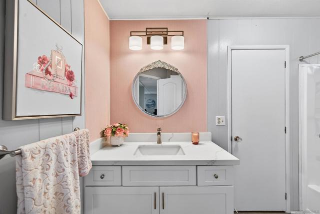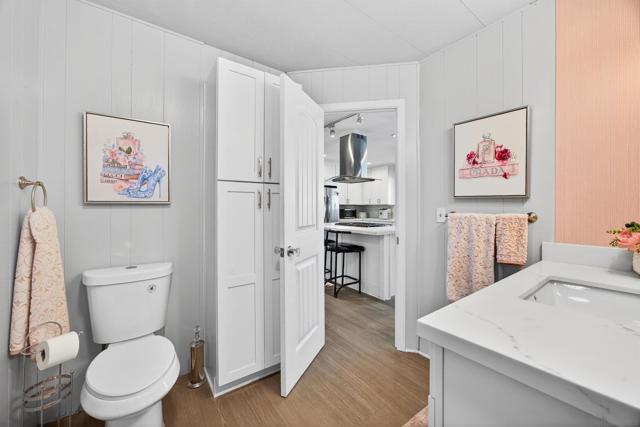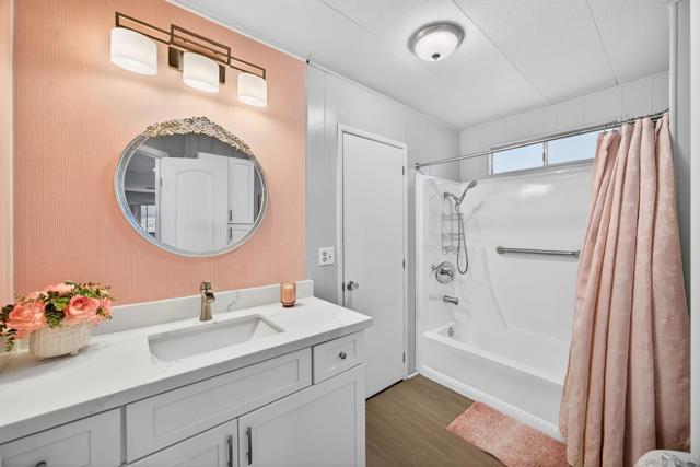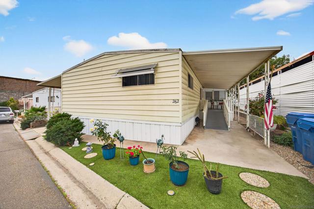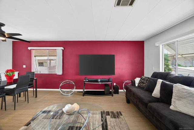 MOVE-IN READY Santee living at its best! Step into this beautifully updated home, thoughtfully renovated by the owner over the past two years. Nearly every part of the home has been upgraded, offering modern style and everyday comfort throughout. The STUNNING open-concept kitchen features quartz countertops, a stylish tile backsplash, and a gas range built into the island, complemented by new stainless steel appliances and recessed lighting. Fresh paint, new flooring and updated bathroom vanities, new showers, and updated plumbing, complete the interior, while a bright sunroom, enclosed workspace shop, and convenient indoor laundry add to the home’s functionality. With two parking spaces and wheelchair access directly into the kitchen, this home is as practical as it is inviting. Cameron’s Mobile Estates is a desirable 55+ community ideally located just off the 52 in Santee, close to Target, Walmart, Costco, and perfectly positioned between San Diego’s beaches and the mountains of the Cleveland National Forest. Community amenities include a pool, sauna, clubhouse, game room, and library—this community truly has it all- COME CHECK IT OUT!