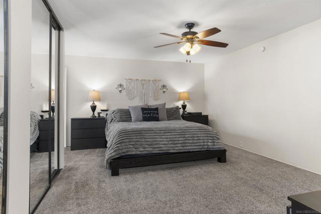 Welcome to the garden-like setting of Mission Playmor! This spacious townhome features generously sized rooms designed for modern living, and lives like a detached home. The beautifully updated kitchen features custom cabinets, quartz countertops, and stainless steel appliances, while the spacious living room offers a cozy brick fireplace and elegant plantation shutters that add a touch of sophistication. Upstairs, natural light pours in through skylights in the stairway and in the primary bathroom. The primary suite includes a private balcony, ample closet space, and dual sinks in the large, ensuite bath. Two additional bedrooms provide peaceful views, and the bonus attic storage adds extra convenience. Step outside to your private patio with a laundry room, and also go enjoy the community amenities, which include two pools, a hot tub, and tennis courts. Ideally located near SDSU, Snapdragon Stadium, Fashion Valley, and major freeways, this home offers the perfect blend of comfort and accessibility. Don’t wait - schedule your showing today!