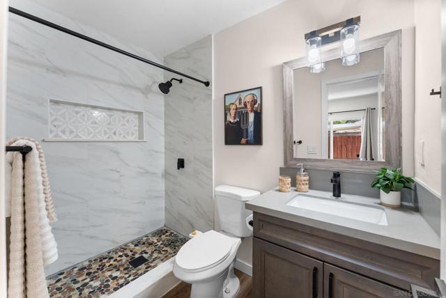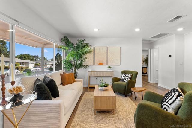 Welcome to 6383–85 Stanley Ave, a fully renovated, 2 unit property featuring a spacious main residence and a fully PERMITTED ADU, offering exceptional flexibility for owner-occupants, multigenerational living, and rental income. The 2-bedroom main home has been thoughtfully redesigned with a complete renovation. The contemporary kitchen features sleek finishes, updated cabinetry, and a grand central island—perfect for entertaining or everyday living. Dual-pane windows with custom window treatments fill the home with natural light while providing blackout privacy when desired. A standout feature of the main home is the expansive BONUS ROOM, surrounded by windows and natural light, with 356 additional square feet of versatile living space. Ideal as a formal dining room, home office, library/den, or media room this flexible area -- the options are endless. The sellers have invested over $93K in improvements, including a new roof (2023), new HVAC systems for both units (2025), and new turf and concrete throughout the private backyard (2024)—creating a low-maintenance, move-in-ready property. The attached studio ADU is fully permitted and thoughtfully designed for privacy and comfort. It features a separate entrance, dedicated mini-split system, a brand-new water heater and a state-of-the-art soundproofing system (~$14,000 investment), ensuring the ultimate privacy between the two units. Don’t miss this rare opportunity to own a fully updated, turnkey two-unit property in a prime location, steps away from the highly desired neighborhood of Rolando Village.