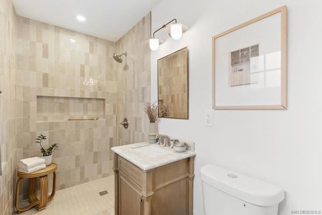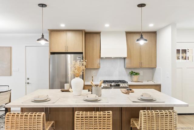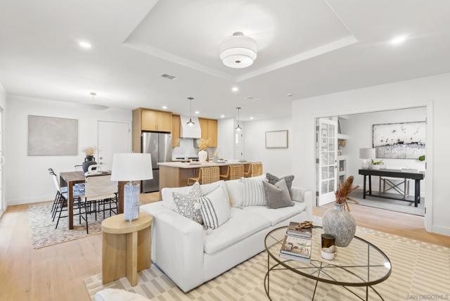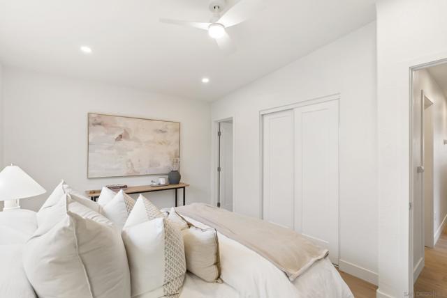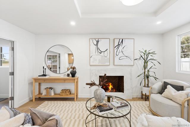 Fully Renovated Fairmount Park Entertainer’s Retreat Completely reimagined and fully renovated, this stunning 4-bedroom, 2-bathroom residence offers modern design and exceptional indoor-outdoor living in centrally located Fairmount Park. The bright, open layout features wide-plank flooring, recessed lighting, dual-pane windows, updated plumbing and electrical, new roof, and new heating and A/C. The spacious living room with gas fireplace flows seamlessly into the designer kitchen, showcasing a large island, custom oak cabinetry, quartz countertops, stainless steel appliances, and generous prep space. The primary suite includes a beautifully renovated en-suite bath, while three additional bedrooms provide flexibility for guests, family, or a home office. The expansive backyard is built for entertaining, featuring multiple gathering areas, a built-in wood-burning fireplace, gas fire pit, large patio space, and room for a BBQ setup or spa. Perfect for hosting a party or ultimate hangout! Additional highlights include a finished detached 2-car garage, ample off-street parking, and rare RV/boat parking potential. Ideally located near Downtown San Diego, North Park, Balboa Park, and major freeways, this turnkey home delivers comfort, style, and convenience in one of central San Diego’s most accessible neighborhoods.