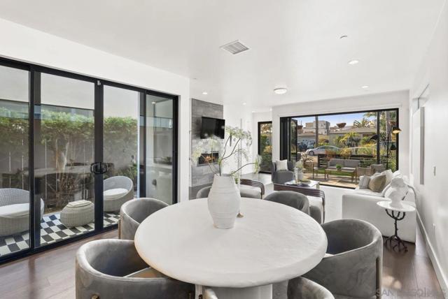 Quietly positioned in the heart of Crown Point, just blocks from Mission Bay and minutes from the ocean, this newer contemporary residence captures the ease and sophistication of modern coastal living. Built in 2019, the home spans three thoughtfully designed levels, blending clean architecture with inviting, livable spaces. The main level opens to a bright, open-concept living area anchored by a refined kitchen featuring GE Café appliances, quartz countertops, custom cabinetry, and an oversized island suited for both daily living and entertaining. Hardwood floors, curated finishes, and La Cantina-style doors create a seamless connection between the interior and the gated front patio, extending the living space outdoors. The second level is dedicated to privacy and comfort, offering three bedrooms including a generous primary suite with dual walk-in closets and a private deck. Above, the third level provides flexible living—ideal as a fourth bedroom, office, or media lounge—with a full bath and direct access to an expansive rooftop deck with bay views, city lights, and sunset skies. Offered for lease in one of San Diego’s most desirable bayfront neighborhoods, the home is moments from Crown Point Park, waterfront paths, dining, and outdoor recreation, with the added benefit of no HOA or Mello-Roos.