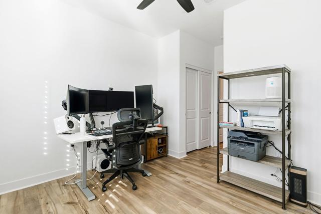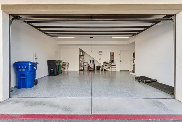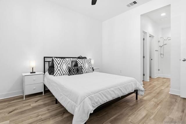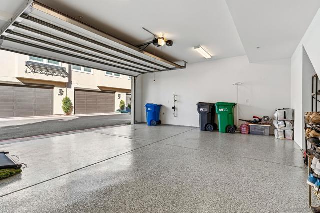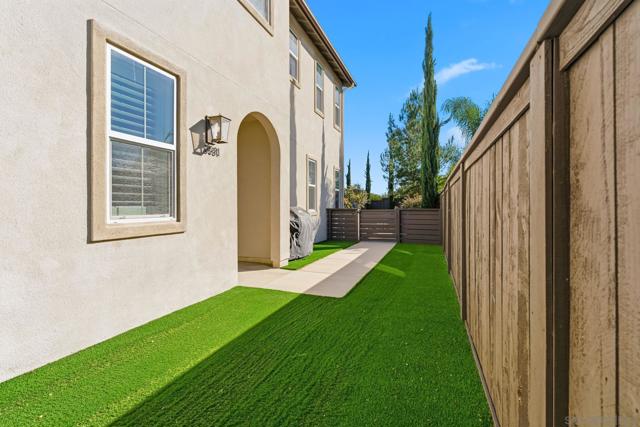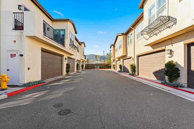Tucked within one of Santee’s most desirable townhome communities, this pristine and private end-unit residence blends modern contemporary design, functional living, and thoughtful upgrades, offering a rare opportunity to own in a neighborhood where homes rarely hit the market. Featuring three bedrooms and an ideal, highly functional floor plan, this home includes a first-floor bedroom complete with a full bathroom and walk-in closet, flexible for an in-law suite, guest retreat, home office, or private gym. Upstairs, you’re welcomed into a grand open-concept living space filled with natural light and framed by beautiful mountain views. The spacious kitchen showcases stunning granite countertops, stainless steel appliances, and a smart refrigerator with touchscreen functionality, so cool that it allows you to view visitors at your door through the Ring camera right from the fridge display, blending luxury with everyday convenience. The expansive primary suite offers a peaceful space for relaxation, complete with an en-suite bathroom and a walk-in closet featuring custom built-ins. Step outside to the oversized balcony, uniquely positioned for added privacy and backing to scenic mountain landscapes. Additional upgrades include newly installed turf, with space to add raised garden beds perfect for crafting a peaceful outdoor extension of the home, ceiling fans throughout, and brand-new epoxy garage flooring. Enjoy eco-friendly living and impactful monthly savings with owned solar panels. Just outside your front door, the community offers a charming seating area, cornhole games, and a BBQ space, great for hosting gatherings or enjoying relaxed evenings outdoors. Ideally located within walking distance to Mission Trails, Cowles Mountain, near multiple shopping centers, dining options, and with convenient freeway access, this home places all of San Diego within easy reach. Blending contemporary style, comfort, and practicality, this exceptional residence presents a rare opportunity to live in one of Santee’s most desirable communities.