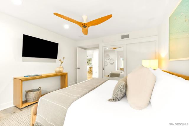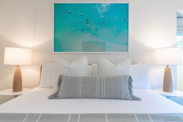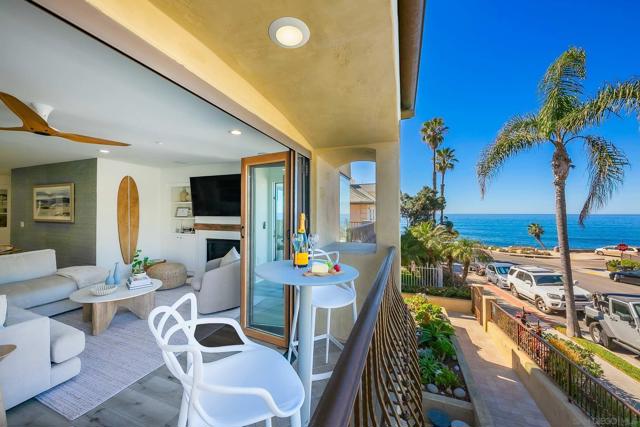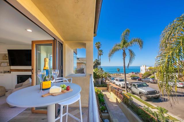 MID-TERM ONLY FURNISHED RENTAL - Sea and Sand: Ocean View La Jolla Condo Wake up to sweeping ocean views in this beautifully decorated coastal retreat just one block from the sand at iconic Windansea Beach. Located in one of La Jolla’s most prestigious neighborhoods, this quiet second-floor residence sits within an intimate four-unit building, offering exceptional privacy, tranquility, and refined seaside living. The light-filled living area is designed to showcase breathtaking ocean views visible from both the living room and the primary suite, with elegant coastal decor, curated furnishings, and thoughtful design throughout. The fully equipped kitchen blends seamlessly into the living space, making it easy to enjoy relaxed meals after a day at the beach. The primary suite is a true retreat featuring stunning ocean views, a cozy fireplace, and a spa-like en-suite bathroom. The second bedroom includes a king bed, dedicated work desk ideal for remote work, and a private balcony. For additional guests, the home offers a queen Murphy bed with frosted sliding glass doors that close for privacy, providing a comfortable and flexible sleeping option. Two dedicated garage parking spaces are included, a rare luxury this close to the beach. Located just steps from Windansea and minutes from La Jolla’s coastline, restaurants, and boutiques, this home offers an exceptional blend of comfort, elegance, and effortless coastal living. Sleeping setup accommodates up to six guests. Rates vary by season and length of stay.