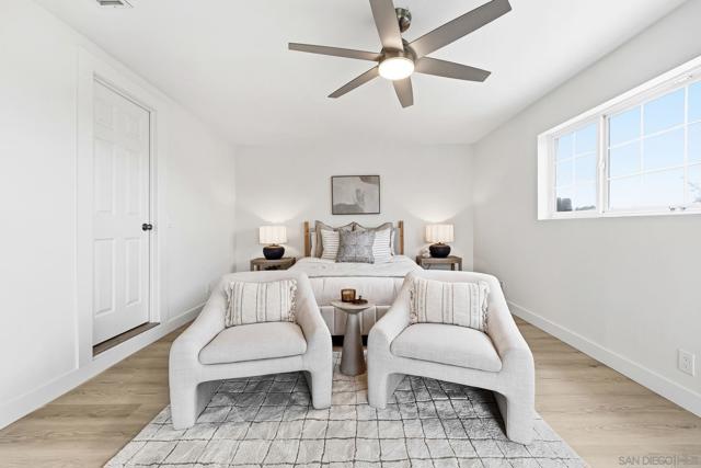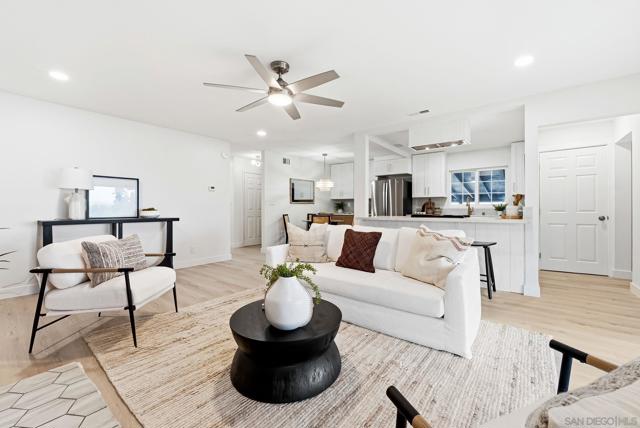 Don’t miss your opportunity to own this beautifully refreshed and move-in-ready turnkey home in the desirable Allied Gardens area of San Diego. Located near shopping, dining, top-rated schools, and with easy access to major freeways, this home offers both comfort and an ideal central San Diego location. Inside, the home has been thoughtfully updated with fresh interior and exterior paint, new hardwood flooring, upgraded baseboards, doors and trim, and stylish luxury lighting throughout. The fully remodeled kitchen features new cabinetry, quartz counters, and all-new appliances, while the bathrooms have been elevated with modern vanities, upgraded fixtures, and beautifully finished tile showers. The flexible layout includes an additional en-suite bedroom and convenient inside laundry. The functional layout opens to a flat, private backyard with fresh landscaping, a pebble walkway, and a new tile patio—ideal for relaxing and entertaining, complete with a built-in outdoor fireplace and tiled seating area. The primary bedroom offers an expanded walk-in closet and direct access to the backyard. Complete with covered carport parking plus space for 6–8 vehicles, scenic views from its corner lot positioning, and a true turnkey feel, this property stands out as an excellent opportunity you won’t want to miss.