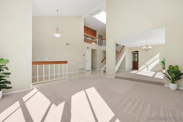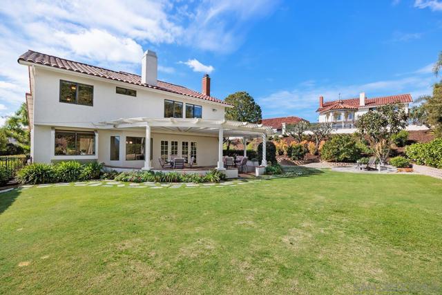 Welcome to your dream home! Nestled in The Villas, a highly sought-after Bernardo Heights neighborhood, this stunning and impeccably cared for 5-bed/3-bath residence boasts not only the largest floor plan, but it is also situated on one of the largest lots in the area and offers a 3-car garage. Top that off with sunrise views over Mt. Woodson, 4th of July firework displays and backyard breezes and you have one very special setting. The home itself exudes natural light as it streams through large windows and skylighting to create a warm and inviting atmosphere. The thoughtful floor plan is framed by a grand entryway and soaring ceilings and includes practical touches, such as a convenient downstairs bedroom perfect for guests or multi-gen living. Upstairs, the luxurious primary suite features breathtaking eastern mountain views and a private sitting area with a cozy fireplace ideal for morning coffee, a home office, or a peaceful newborn nook. The expansive bonus room offers endless possibilities as a media room, playroom, office, and more. The outdoor spaces are meticulously landscaped and an entertainer's dream, complete with a large covered patio that sets the stage perfectly for gatherings. As a bonus, the backyard also includes mature fruit trees including two navel orange trees, one lemon tree, and two loquat trees. Located in a serene neighborhood with a low HOA and exceptional community amenities, this home offers the perfect blend of tranquility and convenience. This is more than a house; it's a lifestyle waiting to be embraced. See supplemental for more. Welcome to your dream home! Nestled in The Villas, a highly sought-after Bernardo Heights neighborhood, this stunning and impeccably cared for 5-bed/3-bath residence boasts not only the largest floor plan, but it is also situated on one of the largest lots in the area and offers a 3-car garage. Top that off with sunrise views over Mt. Woodson, 4th of July firework displays and backyard breezes and you have one very special setting. The home itself exudes natural light as it streams through large windows and skylighting to create a warm and inviting atmosphere. The thoughtful floor plan is framed by a grand entryway and soaring ceilings and includes practical touches, such as a convenient downstairs bedroom perfect for guests or multi-gen living. Upstairs, the luxurious primary suite features breathtaking eastern mountain views and a private sitting area with a cozy fireplace ideal for morning coffee, a home office, or a peaceful newborn nook. The expansive bonus room offers endless possibilities as a media room, playroom, office, and more. The outdoor spaces are meticulously landscaped and an entertainer's dream, complete with a large covered patio that sets the stage perfectly for gatherings. As a bonus, the backyard also includes mature fruit trees including two navel orange trees, one lemon tree, and two loquat trees. Located in a serene neighborhood with a low HOA and exceptional community amenities, this home offers the perfect blend of tranquility and convenience. This is more than a house; it's a lifestyle waiting to be embraced. Additional highlights include a water softener as well as a new roof and new zoned HVAC system within the last 5-7 yrs.