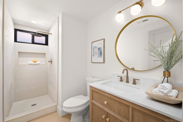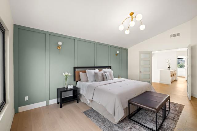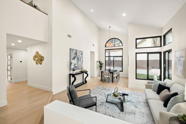 Rare find beautiful fully renovated home located in the quiet cul-se-sac of desirable North of Calle Cristobal neighborhood. Designed with timeless architecture and contemporary flair, this home features an open-concept layout with modern fixtures. Everything is brand new from top to bottom! The first-floor features double door entry, a custom wrought iron spiral staircase, soaring high ceilings, and an open floor plan that includes formal living and dining rooms, plus a full bedroom and bathroom. LED recessed lighting and large windows fill the home with natural light. Fully remodeled kitchen with waterfall marble countertops/backsplash, sleek cabinetry, stainless-steel smart appliances, and a large basin sink. Open family room with custom fireplace and breakfast nook opening to a spacious yard with new landscaping. Upstairs, the vaulted-ceiling Primary Suite provides a serene retreat with a custom-built accent wall, walk-in closet with custom built-ins and an en-suite bath with dual sinks, custom mirror, large freestanding tub, and walk-in shower. All bathrooms feature custom tiles, Quartz countertops, new vanities, mirrors, lighting, and fixtures. Additional upgrades include new roof, new luxury vinyl plank flooring, all new windows, doors and hardware, custom lights, and LED lighting throughout, fresh interior/exterior paint, Epoxy flooring 3-car garage, and a laundry room. Close to Sorrento Valley, Qualcomm, Torrey Pines Beach, UCSD, top schools, parks, trails, dining, and shopping. No HOA. No Mello Roos.