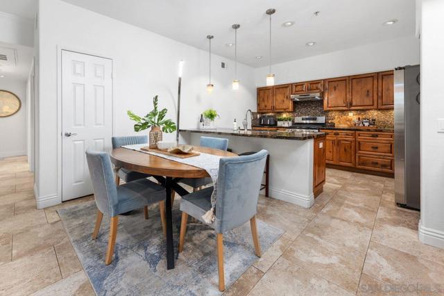 Welcome home to this beautifully upgraded two bedroom plus private den/office corner residence in the gated community of The Heights, thoughtfully designed for seeking comfort, convenience, and access to top tier schools. Located in one of San Diego’s most desirable school districts, this home offers the rare advantage of having the elementary, middle, and high schools just steps away. Morning drop offs become easy and after school activities are effortlessly accessible. Inside, the home is filled with natural light throughout the day, creating a warm and uplifting atmosphere. As a corner unit, you will enjoy added privacy along with peaceful tree views from every window. The flexible third room offers the perfect space for a home office, study area, playroom, or guest room. The kitchen is both stylish and functional, featuring Brazilian granite countertops with elegant pendant lighting, stainless steel appliances including a newer refrigerator, and a Spanish stone backsplash that extends to the fireplace. Recessed LED dimmer lighting throughout, interior designer paint, and flooring with no carpet deliver a clean and modern feel that is easy to maintain. Central HVAC ensures year round comfort. The Heights offers resort style amenities where you will enjoy a pool, spa, clubhouse, and fitness center. The HOA covers water and trash. Parking is convenient with a private garage plus an additional assigned space nearby. Enjoy close proximity to shopping, groceries, and restaurants in One Paseo and Del Mar Highlands and Carmel Valley Recreation Center and library nearby. Just minutes to I-805, I-5, and 56 freeway and the beautiful beaches of Del Mar/Torrey Pines. A rare opportunity to own a bright and private corner residence in Carmel Valley, where top rated schools, inviting surroundings, and everyday convenience come together to create the ideal lifestyle.