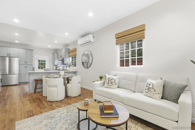 Welcome to 3136–3140 Grape Street — a beautifully renovated triplex in the heart of South Park, one of San Diego’s most sought-after urban neighborhoods. Tucked on a quiet residential street just 2 blocks from Fern Street and 3 blocks from 30th Street’s vibrant dining, coffee, and boutique corridor, this turnkey property is also only 0.4 miles to Balboa Park and Grape Street Dog Park. Enjoy immediate access to neighborhood favorites including Piacere Mio, Mothership, Station Tavern, The Rose Wine Bar, Shawarma Guys, Seven Seas Roasting Co., and even Target just two blocks away. This meticulously maintained property features three fully renovated residences filled with natural light and modern upgrades, including dual-pane windows, luxury vinyl plank flooring, and thoughtful improvements completed by both current and prior ownership. The versatile layout includes two spacious 3-bedroom/1-bath units in the front structure and a detached 1-bedroom/1-bath guest house at the rear, ideal for owner-occupants, multigenerational living, or investors seeking strong rental demand. 3136 – Lower Front Unit (3BR/1BA) - Warm, welcoming, and perfectly positioned for daily living, this home offers high ceilings and an open layout designed for comfort. The upgraded kitchen features peninsula seating, custom built-in cabinetry, newer refrigerator and dishwasher, and in-unit laundry with an O2 cleaning system. Recent improvements include a tankless water heater, mini-split heating & A/C, smart home lighting controls, and a new front-yard drip irrigation system...SEE SUPPLEMENT... ...3136 cntd...Step directly into a large private fenced backyard — perfect for pets, gardening, or entertaining — plus a sunny front porch overlooking the quiet street with sparkling city lights at night. The layout and privacy make this an especially natural choice for an owner-occupant while the remaining units provide income. 3138 – Upper Front Unit (3BR/1BA) - Bright and airy residence offering sweeping mountain and city views with peek-a-boo water views on clear days. Includes a private side yard and convenient shared laundry access. 3140 – Rear Detached Unit (1BR/1BA) - Privately positioned single-level guest house designed for indoor-outdoor living. French doors open to a private yard and deck, with shared laundry access. This fully fenced property provides exceptional privacy and the indoor-outdoor lifestyle San Diego is known for. Gated off-street parking accommodates up to four vehicles, and three large custom storage structures add flexibility — including one currently serving as a shared laundry room and tenant storage. Currently, two units (3138 & 3140) operate as furnished mid-term rentals and are tenant-occupied on month-to-month agreements, providing immediate income while allowing future owners flexibility to adjust occupancy as desired. A rare opportunity to own a thoughtfully upgraded, income-producing property in one of San Diego’s most desirable communities — perfect for owner-occupants seeking supplemental income or investors pursuing a prime South Park asset.