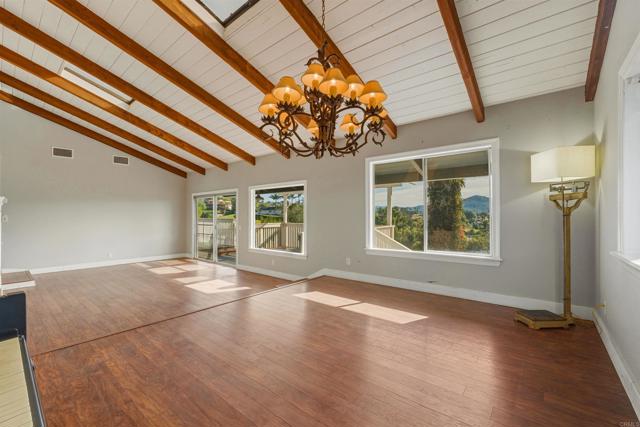 Fantastic Mary Ln. property with vaulted ceilings, and wide open space. Situated on over .5 of an acre, with views of the San Pasqual valley range. Multiple citrus trees located on the property. Expansive decks for entertaining and enjoying the outdoor space. Open chef's kitchen with formal dining area. Stay warm with a glowing fire in the fireplace. In ground pool and spa. Roof replaced around 11 years ago with a 50 year roof, HVAC system added around 7 years ago. 1 bed 1 bath approx 1000 sq ft JADU located on the below level. Large craft or game room located on lower level. All furnishings included with the JADU. Come view this custom property and make it your own.