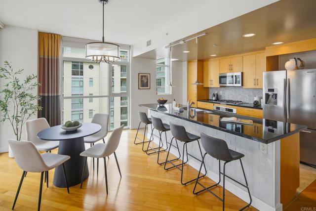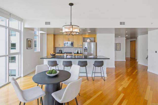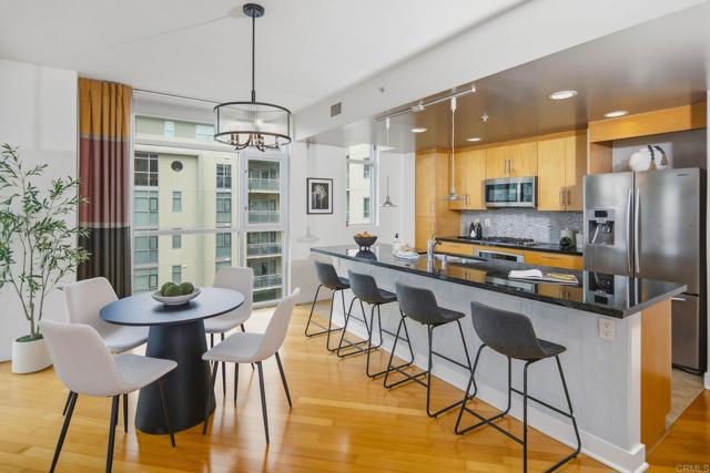 Welcome to this spacious 2 bedroom 2 bath westerly facing Unit In the heart of Hillcrest. Situated on the corner of University Ave. & Park Blvd., The Egyptian is surrounded by trendy bistros and cafes and is within walking distance of Balboa Park. As you enter the home you will gaze upon a light and bright open floor plan that allows the living room, dining area and kitchen to flow seamlessly together for ease of daily living. Floor to ceiling windows bathe the living spaces in natural light. Offering City Views with Sunsets and a exclusive use balcony for your out door enjoyment. The open kitchen features plenty of cabinet and counter space for all your culinary endeavors, stainless steel appliances, recessed lighting and a large eat-at center island accented by pendant lighting. Imagine yourself sitting on the balcony, sipping your favorite beverage, soaking in the idyllic San Diego weather all year long. Both bathrooms have been upgraded with modern flair. The split bedroom floor plan is ideal for roommate or work-from- home scenarios, giving everyone a little extra privacy. The in-unit laundry will take the chore out of laundry day! Two assigned tandem parking spaces, with an EV charging station, in the underground garage will make parking a breeze. An 8’x4’ storage area is also included with the Unit. Hillcrest is a vibrant urban neighborhood of San Diego offering restaurants serving global cuisines, a mix of cafes, brunch spots, clothes shops plus a weekly Farmers Market.