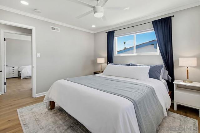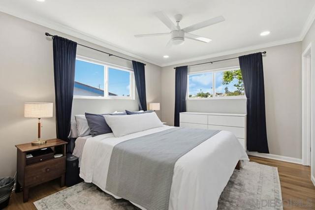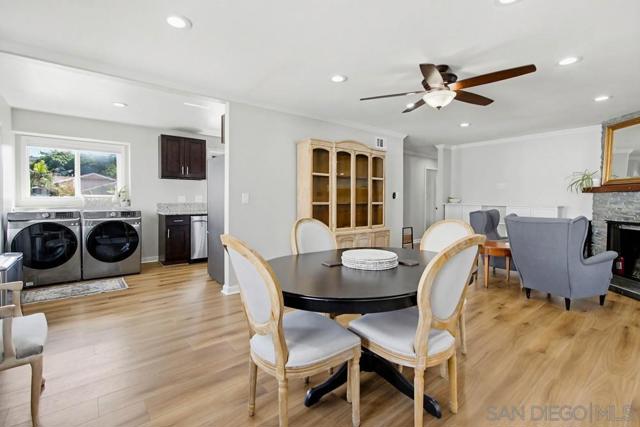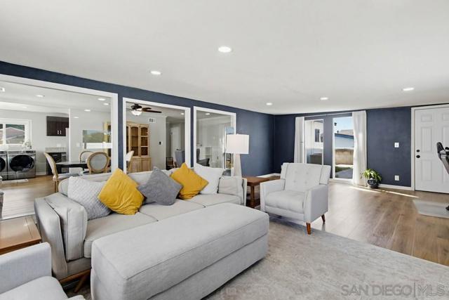 Updated 3 bed, 2 bath home offering 1,572 sq ft in Lemon Grove. Single-level floor plan features a spacious great room designed for flexible living, entertaining, or combined living and dining arrangements. Interior updates include LVP flooring, recessed lighting in main living areas, and dual pane windows throughout for energy efficiency and natural light. Kitchen connects seamlessly to the dining space and includes granite countertops, stainless steel appliances, gas range, and ample cabinet storage with generous prep space. Solar system (leased) supports efficiency, and the home includes central AC for year-round comfort. New water heater recently installed. Primary suite includes an updated en-suite bath with walk-in shower and tile surround. Two additional bedrooms offer flexible space for office, guest room, or hobby use. Both bathrooms feature updated finishes and clean, modern presentation. Outdoor improvements create multiple functional zones with newly poured concrete pads, expanded hardscape areas for seating or outdoor dining, defined fire pit gathering space, planting beds, and a mature citrus tree. Fully fenced yard with 2024 vinyl fencing plus a newer front fence and gate. Retaining wall completed. Storage shed included. Off-street driveway parking available. Located approximately 0.2 mi to San Altos Elementary School and 0.8 mi to Berry Street Park, with convenient access to 94 Fwy. Don't miss out on this turnkey Lemon Grove beauty!