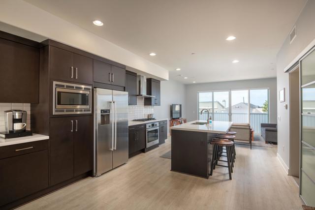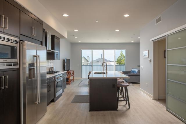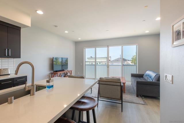 Live the ultimate coastal lifestyle in the heart of Bird Rock. This beautifully appointed 1-bedroom + optional second bedroom, 2-bath residence offers 1,052 square feet of refined living within an impeccably maintained building built in 2016. Just steps from beloved coffee shops, restaurants, boutiques, fitness studios, Calumet Park, and the sparkling Pacific, the walkability here is simply unmatched. Inside, dark modern cabinetry pairs seamlessly with high-end Bosch appliances and light contrasting flooring, creating a sophisticated yet bright and inviting atmosphere. Expansive windows flood the home with natural light, while an extra-wide sliding door in the living room captures refreshing ocean breezes and peek ocean views. The flexible bonus space, currently styled as a dining room, offers endless potential as a home office, nursery, study, or guest room. The spacious primary suite features a large ensuite bath and an oversized walk-in closet rarely found in condos of this size. As a desirable end unit sharing only one wall, privacy and tranquility are elevated. Residents enjoy a stunning common rooftop deck complete with lounge seating, an umbrella, a barbecue, and a fire pit — the perfect setting for sunset gatherings with ocean views. Additional conveniences include two secured parking spaces with an EV charger in the gated garage, a generous private storage room, and a community bike room. Coastal luxury meets everyday ease in one of La Jolla’s most sought-after neighborhoods.