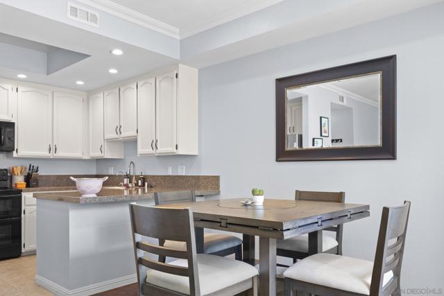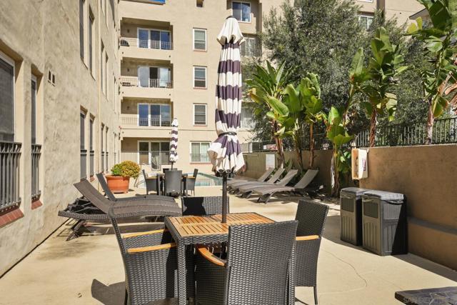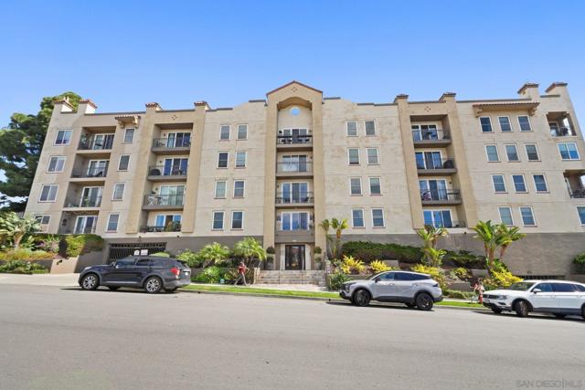 Have it all and live steps from everything you love about San Diego in this stylish ground-floor residence at Villa Portofino in the heart of Bankers Hill! Designed with a breezy coastal feel, this appealing home includes high ceilings and thoughtful upgrades throughout. The open kitchen shines with granite counters, refinished cabinetry, tray ceiling, and a double oven with microwave, perfect for home chefs. Recessed, dimmable LED lighting, Hunter ceiling fans, crown molding, and a custom fireplace mantle add warmth and character, while double-pane windows and custom patio sliders with pool view enhance comfort and efficiency. This is a gated building. The spa-inspired bath features a jetted Jacuzzi tub and rain showerhead, plus a Washlet bidet toilet. The spacious bedroom offers a generous closet, and the in-unit, full-size washer and dryer provide maximum convenience. Modern touches such as custom shades and blinds, pull-down patio shade, and automatic laundry and closet lighting elevate everyday living. From your private patio, enjoy direct, no-step access to the pool, spa, BBQ area, and outdoor lounge. This upscale community is gated throughout and includes a well-equipped gym facility. Two deeded parking spaces—a rare perk for a one-bedroom—add exceptional value, along with 3.8% assumable VA loan. Walk to Balboa Park and Little Italy’s exceptional dining, and reach downtown, Hillcrest, and the airport in minutes. This is effortless urban living with resort-style perks right outside your door. Your next chapter starts here! Furniture can convey.