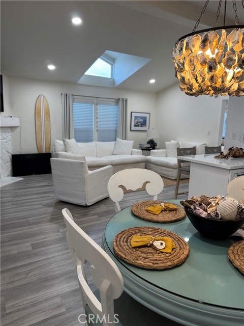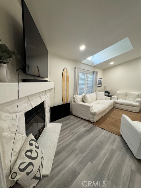 Welcome to this stunning "Coastal Chic Beach House" You will immediately notice the extra large porch in front with plenty of room for outdoor seating. Enter into the lovely Foyer (or third bedroom) (Can be made into a third bedroom easily) and be impressed by the high ceilings, open floorplan and light and bright decor. Multiple skylights brighten up every room. Each room expertly and tastefully designed with White/Neutral tones reflecting the beach lifestyle. Also features a newer completely remodeled kitchen, bath and rooms from the high ceilings, to the beautiful tile and stone, to the wood-burning fireplace. Crown molding, Farmhouse Sink, Soft-close cabinets, upgraded lighting inside/out. Newer stainless steel appliances, upgraded vanities and toilets as well as Dual-paned windows, walk in closets, plenty of storage as well as a large outside storage shed. A new white vinyl fence was recently added for even more privacy and there is an enclosed area in the driveway for an outside seeating area/ dog area/ play area for the little ones. Community has a heated pool, full gym, jacuzzi, car wash area and guest parking in addition to your very own 2-3 car parking outside of home. Walk across the street to the beautiful "Surf City USA" Beach and watch all the sporting events, sailboats, concerts etc.. Walk or ride your bike and see how amazingly close you are to Pacific City, Main Street and all the ammenities Huntington Beach has to offer! Welcome Home... Beach Life...