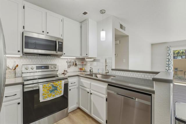 Ideally located near the nexus of Rancho San Diego, Spring Valley and southern El Cajon, this updated Condo in the desirable Mirasol complex is bright, functional and will be ready for immediate move-in! Recent updates in the last five years include newer sound-insulating premium Anlin vinyl windows, renovated kitchen with stainless steel appliances, new flooring in kitchen/dining/living areas, new vanities in bathrooms and renovated master shower enclosure. Enjoy living with a southern exposure patio and easy access to the northside pool complex! This thoughtfully designed ground floor corner unit also includes two (2) covered parking spaces with outdoor storage lockers, and washer/dryer in a central hallway closet. Conveniently located near major shopping, dining, entertainment, hiking trails and Cuyamaca College. All appliances included! Electric charging on the property.