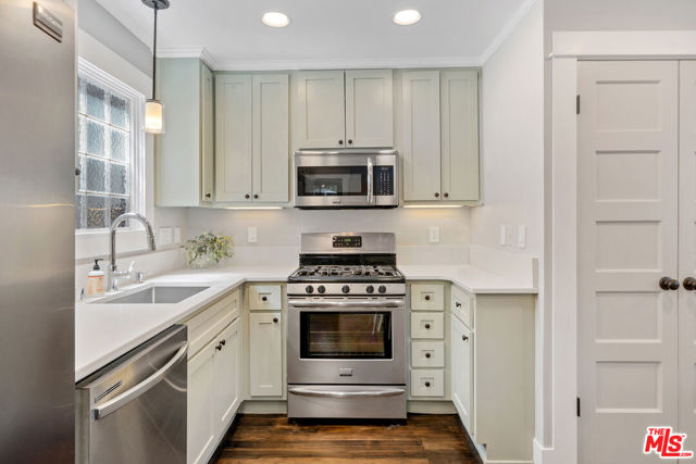 PRICED TO SELL. RARE WEST HOLLYWOOD COMPOUND OPPORTUNITY. Exceptional value in the heart of West Hollywood. This gated compound features 3 separate addresses; it includes two homes plus a versatile detached ADU, offering outstanding flexibility for living, leasing, or creating a private multi-residence retreat. The main residence blends classic character with thoughtful modern updates. Sunlight fills the living spaces, highlighting rich wood floors, custom millwork, and charming architectural details. A welcoming living room with a fireplace flows seamlessly into the dining area and a beautifully updated kitchen equipped with marble surfaces, quality stainless steel appliances, custom cabinetry, a farmhouse sink, and direct access to the outdoor entertaining area. The front home offers two comfortable bedrooms and enjoys exceptional indoor-outdoor living. A welcoming front patio creates the perfect setting for morning coffee or evening gatherings, while multiple outdoor areas provide abundant space to relax and entertain. In addition to the front patio, the front home benefits from its own private backyard, ideal for dining al fresco, gardening, or simply enjoying the serene setting. Tucked toward the rear of the property, the fully updated 1-bedroom, 1-bath home offers privacy and independence. Featuring quality finishes and its own distinct living space, it's well-suited for rental income, extended family, or long-term guests. Adding even more versatility, the detached ADU with its own bathroom presents a flexible bonus space perfect for a home office, gym, studio, guest quarters, or additional income opportunity. Surrounded by mature hedging and lush greenery, the grounds create a peaceful, private environment with generous yard space and room to further enhance or customize. Positioned just moments from West Hollywood's premier dining, shopping, and nightlife, this property presents a rare opportunity for both owner-users and investors seeking strong upside potential.
