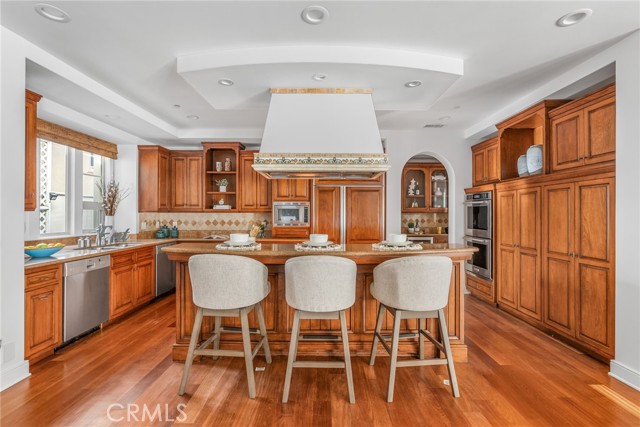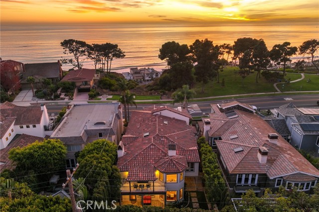 Located on a scenic drive overlooking Capistrano Beach, this custom elegant residence offers a magnificent unobstructed view of the Pacific Ocean and its coastline. Right across from the Pines Park, it is as close as you can get for a great view without the busy traffic down by the PCH, but yet, close enough for all the exciting food, shopping, and events in the lively Capistrano Beach neighborhood of Dana Point. The residence features four bedroom-suites, three upstairs and one downstairs with a separate powder room downstairs as well. Upon entry, the sun-bright living room with great view of the park and the ocean will make you wants to sit down and stay. But it gets better for the upstairs balcony by the loft where you can enjoy relaxing and unwinding moments or even a romantic dinner by the ocean. When you walk up the stairs to the rooftop patio, you will be treated with the best and spectacular view of the ocean and the surroundings! Chef’s kitchen comes with custom cabinetry throughout, 6-burner Thermador stove and other selective appliances. This cozy beach house has a large master bedroom suite completes with a retreat area with a fireplace, a separate study or office area along with an exercise/yoga room and a balcony for the backyard view. Landscaping of this house has been tastefully updated with colorful array of various plantings in both front and back yard. Enjoy your backyard built-in BBQ – perfect gathering place for family and friends. This house has also been renovated with refinished wood floor, new interior and exterior paint, new carpet, new recessed lighting throughout, along with new epoxy flooring in the garage.