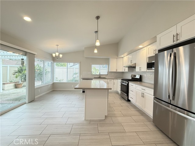 Remodeled Single level home in Northwood, Prime Location conveniently located in the heart of Irvine, Spacious Open Floor Plan, vinyl Flooring, Gourmet Kitchen with Tile Flooring, Spacious Quartz Island Perfect for Entertaining, Stainless Dishwasher, Large Sink, New Refrigerator, Kitchen is Open to the Family Room that Overlooks the Backyard, Large Master Suite with Walk-in Closet, Master Bathroom with Double Vanities, Tub, Walk in Shower, Second Bathroom with Double vanities, Attached 2 cars Garage, Short Distance to Award Winning Irvine Schools and Walking Distance to Northwood Elementary School, parks and short drive Shopping centers and Restaurants.
