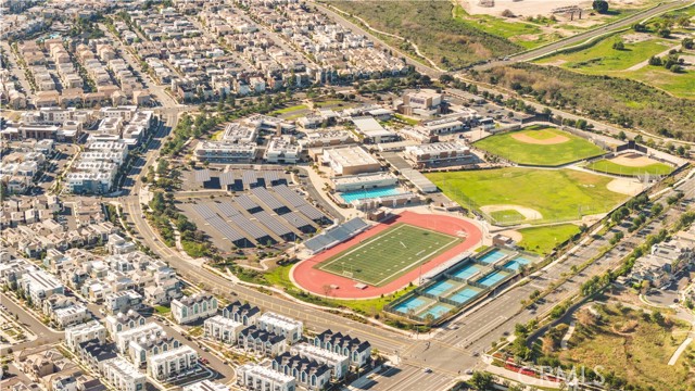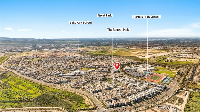 Discover a stunning tri-level townhome, thoughtfully designed and situated directly across from the award-winning Portola High School in one of Irvine's most sought-after communities. This residence features 3 bedrooms, 3.5 bathrooms, and a versatile loft that easily adapts to your needs—whether as a home office, media room, or extra lounge. The second floor boasts an inviting open-concept layout, where the living and dining areas flow seamlessly into a modern kitchen equipped with sleek stainless-steel appliances, contemporary cabinetry, and generous counter space. A private ensuite bedroom on this level offers ideal accommodations for guests or multi-generational living, while a convenient powder room adds to the home's everyday functionality. The third floor is designed for comfort and light, showcasing a bright loft, a luxurious primary suite with a spa-inspired bathroom, and an additional secondary bedroom and bath. Beautiful wood-like flooring runs throughout, enhancing the modern aesthetic while ensuring easy maintenance. Two charming balconies provide peaceful spots to enjoy morning coffee or evening breezes. With its main entrance on Merit, this home offers unmatched convenience—just steps from Portola High School, making it an exceptional choice for families. As part of the renowned Great Park Neighborhoods, residents enjoy world-class amenities, including parks, a clubhouse, heated pools and spas, sports courts, playgrounds, and picnic areas—perfect for both active living and community connection. From the moment you arrive, this home offers the perfect blend of comfort, style, and everyday convenience—truly a rare find in the heart of the Great Park Neighborhoods.