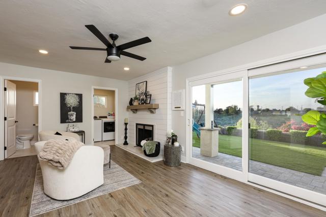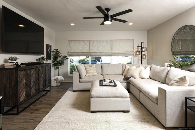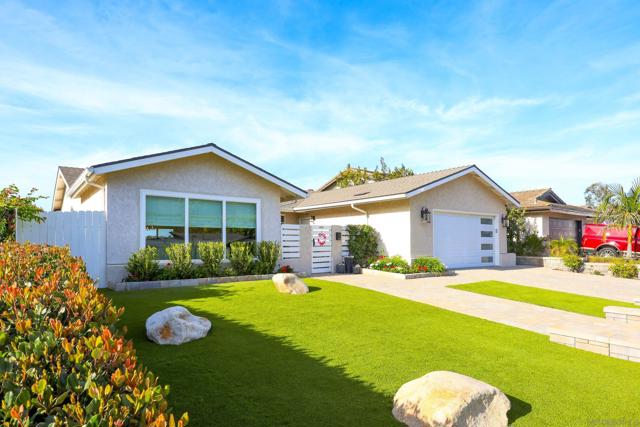 Stroll to 5718 Bounty Street, a beautifully reimagined single-level home nestled in the highly sought-after Princess Del Cerro community of San Diego. Thoughtfully updated and meticulously maintained, this 4-bedroom, 2.5-bath beauty blends modern upgrades with timeless comfort — creating a turnkey opportunity you won’t want to miss! From the moment you arrive, the enhanced curb appeal makes a lasting impression! A sleek driveway space, fresh front-yard hardscape, lush turf, and thoughtfully selected landscaping create a clean, low-maintenance exterior. Inside, the home features a bright, refreshed interior with updated finishes and intentional design touches. The inviting living space is anchored by the open dining space, kitchen island area, and a beautifully appointed fireplace with a custom mantle — perfect for cozy evenings and sipping morning coffee! The remodeled layout flows seamlessly, offering both comfortable everyday living and easy entertaining options. The primary suite features a custom closet organizer, while additional bedrooms provide flexibility for family, guests, or a home office. A designated laundry room adds convenience, and the two-car garage offers ample storage. Step outside to your private backyard retreat space — complete with a custom covered patio pergola area and built-in BBQ, ideal for hosting gatherings or enjoying quiet evenings under the San Diego sky while being wow’d by magical sunsets! Low-maintenance turf in both the front and back yards ensures year-round beauty with minimal upkeep. This move-in-ready abode combines thoughtful upgrades, functional design, and an unbeatable location! Experience the comfort of easy living in one of San Diego’s most desirable neighborhoods. Welcome home to 5718 Bounty Street!