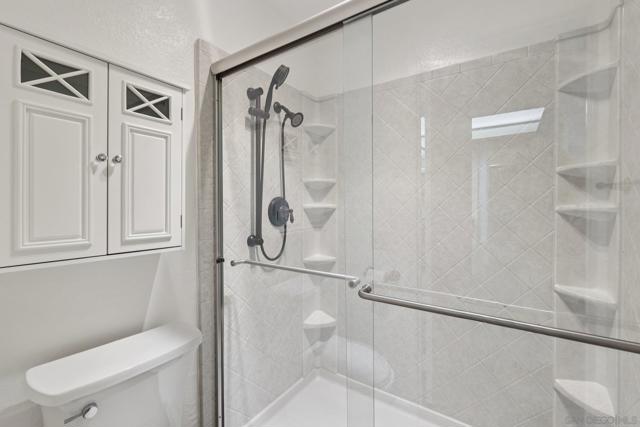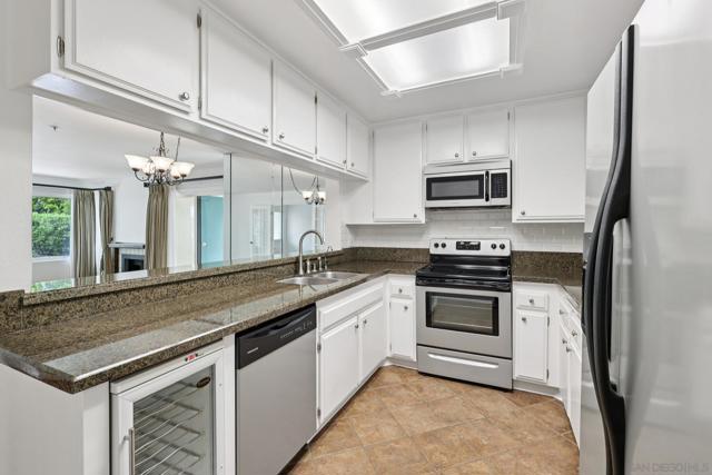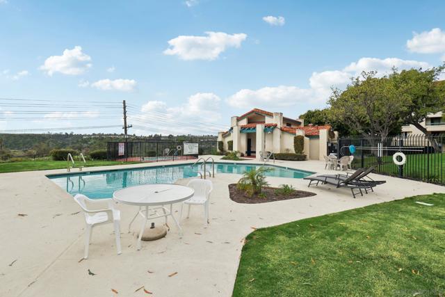 Located in the highly desirable community of Tierrasanta in San Diego, this beautifully updated 2-bedroom, 2-bathroom condo offers 1,118 sq ft of light-filled living space in a quiet, park-like setting. This corner unit overlooking a fountain and lush landscaping provides exceptional privacy and tranquility rarely found in condo living. Inside, you’ll find an updated kitchen with wine refrigerator and full-size refrigerator, fresh neutral paint, and modern easy-care flooring throughout. The spacious living room features a gas fireplace, creating a warm and inviting atmosphere. The functional layout includes an optional in-unit laundry space, a water filtration system, and generous storage—including additional patio storage. This home includes one assigned parking space in a secure underground community garage, plus off-street guest parking. The HOA amenities enhance lifestyle convenience with community amenities including heated pool, spa, sauna, BBQ and picnic areas, and pickleball courts amidst beautifully maintained grounds. El Dorado Greens is primarily a smoke-free community.