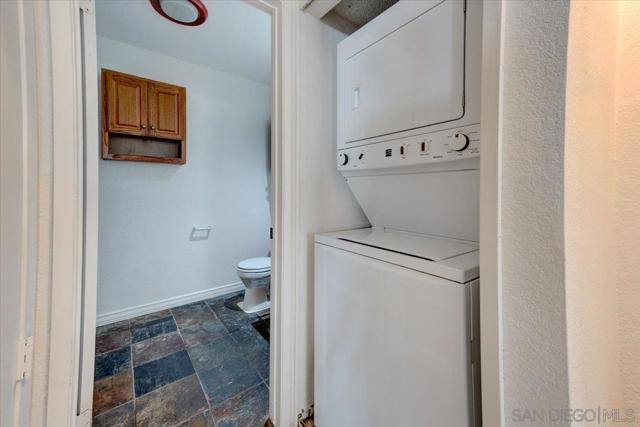 Welcome home to this charming freshly painted 2 bed, 2 bath Mission Valley condo that truly checks all the boxes! With 942 square feet of living space, this gem offers both comfort and convenience close to amenities and transportation. Step inside to find a bright, open floor plan with slate-style flooring a separate dining area and a living room fireplace! The bedrooms with new carpet are generously sized, each with its own slider that opens out to your private patio space—perfect for sipping your morning coffee or relaxing at the end of the day. Bonus: there's a handy storage closet right outside! The primary bedroom has the added perk of an en-suite bath, giving you your own retreat. You’ll love having your own washer and dryer (no more laundromat trips!)—a rare find in this price range. Plus, parking is a breeze with one covered spot and additional open permit parking for a second car. The complex itself is like having a mini resort in your backyard, featuring a sparkling pool, spa, serene pond with water features out front of the unit, and even a workout room. Whether you’re lounging by the pool or just enjoying the tranquil vibes of the community, this place makes it easy to live the dream. Don't miss out on this fantastic opportunity—affordable, move-in ready, and perfectly located! Schedule a showing today and make this amazing condo yours.
