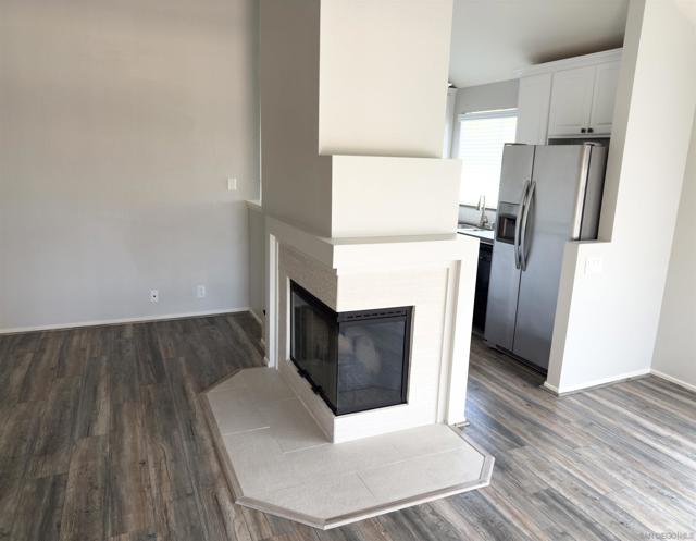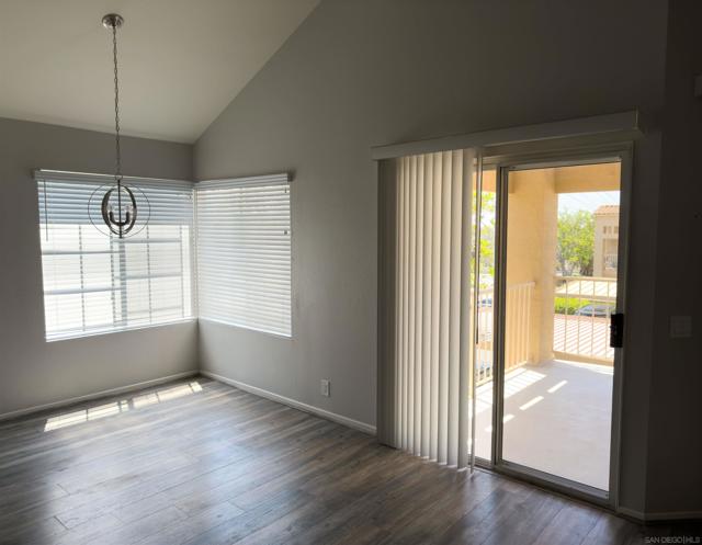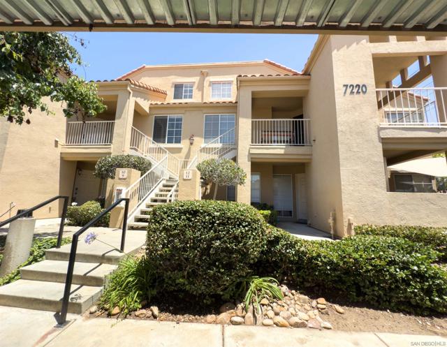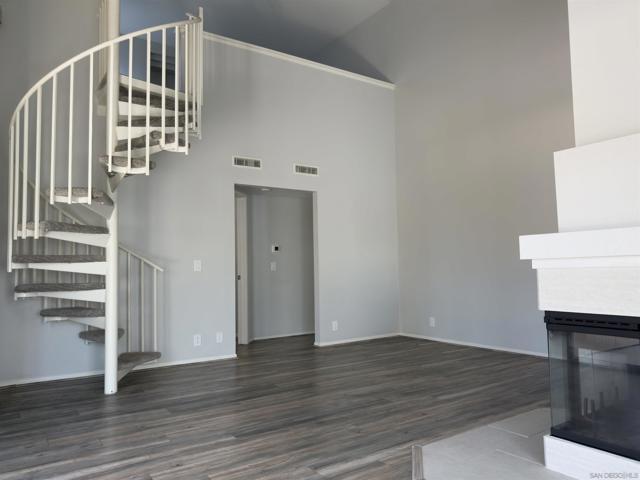 Condo with a versatile loft offering 1,114 sq ft of thoughtfully designed living space in the heart of Mira Mesa. Soaring vaulted ceilings and expansive windows create an open, airy feel, while updated flooring and a modern fireplace add warmth and style to the main living area. The kitchen features crisp white cabinetry, sleek countertops, stainless steel appliances, and a functional layout that flows seamlessly into the dining space and private balcony—perfect for morning coffee or evening relaxation. Upstairs, the spacious loft provides the ideal flex space for a home office, guest area, or creative studio. Both bedrooms are generously sized, and the home includes in-unit laundry for everyday convenience. Located in a well-maintained community close to shopping, dining, parks, and major freeways, this home offers comfort, functionality, and prime central access all in one.