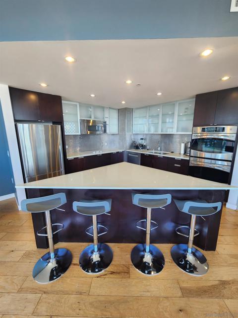 This furnished 3-bedroom, 3-bath penthouse at Aria is located in Downtown San Diego’s desirable Cortez Hill neighborhood, offering convenient downtown access while remaining removed from heavier congestion and activity found in surrounding districts. Positioned on the penthouse level, the residence captures expansive urban and open views toward Balboa Park, the mountains, Downtown skyline, bay, and the Coronado Bridge. Floor-to-ceiling windows provide strong natural light while framing unobstructed city and park-facing vistas. The open living and dining areas connect directly to a large wraparound balcony, creating seamless indoor-outdoor living rarely available in Downtown condominiums. The kitchen features quartz countertops, stainless steel appliances, built-in ovens, a wine refrigerator, extensive cabinetry, and a large center island open to the main living space. The dining area is complemented by a beautiful chandelier adding warmth and character. The primary suite offers balcony access, generous closet space, and an ensuite bath with dual vanities and walk-in shower. A secondary bedroom includes its own private bathroom, while the third bedroom provides flexible guest or office use with direct balcony access. Full-size stacked washer and dryer included. Aria amenities include secured entry, pool, spa, fitness center, resident lounge, and side-by-side underground parking with direct elevator access to the penthouse level. This furnished 3-bedroom, 3-bath penthouse at Aria is located in Downtown San Diego’s sought-after Cortez Hill neighborhood, offering the convenience of downtown living while remaining removed from the heavier congestion and constant activity found in surrounding districts. Positioned high above the city, the residence captures expansive urban and open views extending toward Balboa Park, the mountains, Downtown skyline, bay, and the Coronado Bridge. Floor-to-ceiling windows bring in natural light throughout while framing wide, unobstructed city and park-facing vistas. The open living and dining areas connect directly to a large wraparound balcony, creating seamless indoor-outdoor living rarely found in Downtown condominiums. The kitchen is well suited for both everyday living and entertaining, featuring quartz countertops, stainless steel appliances, built-in ovens, a wine refrigerator, extensive cabinetry, and a large center island that anchors the space while remaining fully open to the living and dining areas. The dining area is complemented by a beautiful chandelier that adds warmth and character to the space. The primary suite offers balcony access, generous closet space, and an ensuite bath with dual vanities and an oversized walk-in shower. A secondary bedroom includes its own private bathroom, while the third bedroom provides flexible guest or office use and features direct access to the wraparound balcony via a private exterior entry from the common balcony area. Aria offers secured entry, fitness center, resident lounge, pool, spa, and underground garage parking including side-by-side assigned spaces. From the garage, residents can walk directly to the elevator and take it straight to the penthouse level. A rare opportunity to lease a furnished penthouse residence offering scale, privacy, outdoor space, and panoramic views within one of Downtown San Diego’s most established residential buildings.